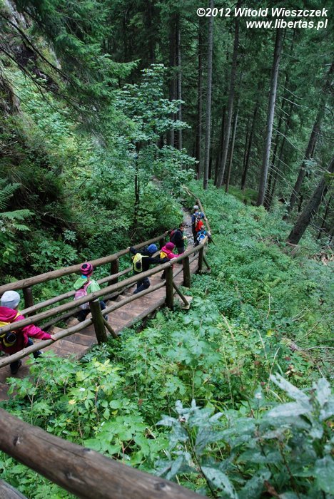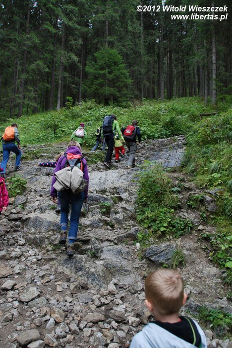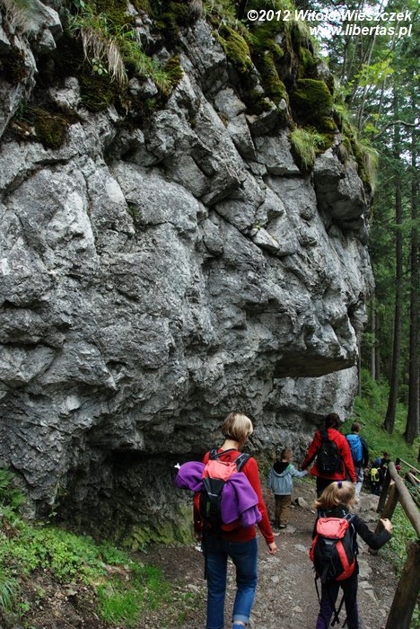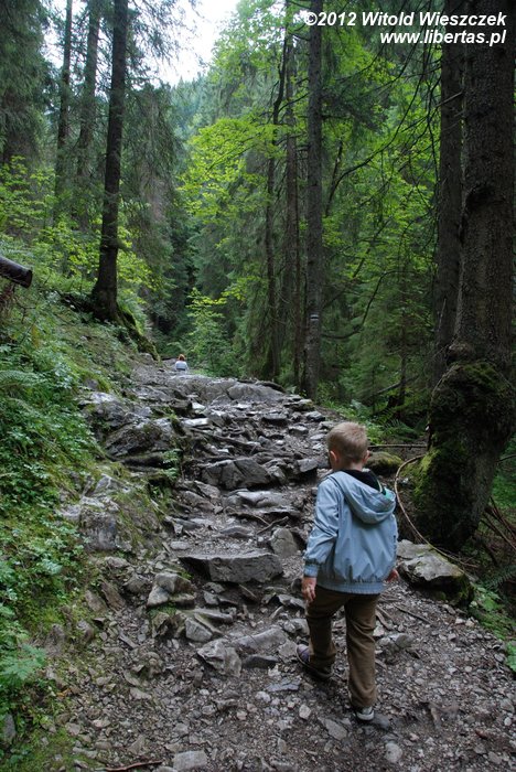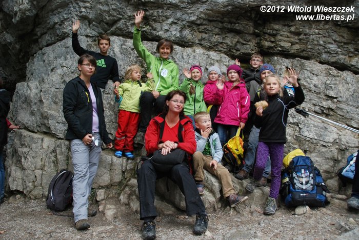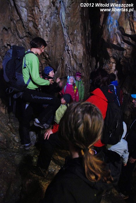 Tempo wycieczki nie było zbyt wymagające i okazało się, że nawet Jeremi był w stanie nadążyć, a na bardziej stromych podejściach na hasło "wspinamy się" dostawał dodatkowego przyspieszenia. Dodatkową atrakcją było zwiedzanie Jaskini Mroźnej, pierwszej i chyba jedynej oświetlonej jaskini w polskiej części Tatr. Oczywiście również tę okazję pani Magda wykorzystała, by przemycić do dziecięcych głów kilka ciekawostek.