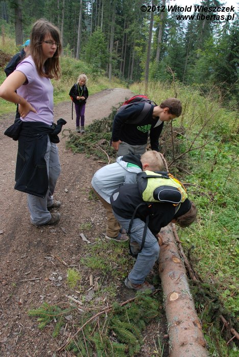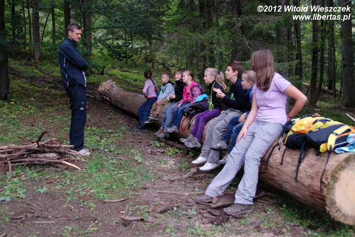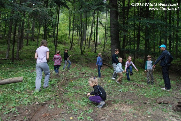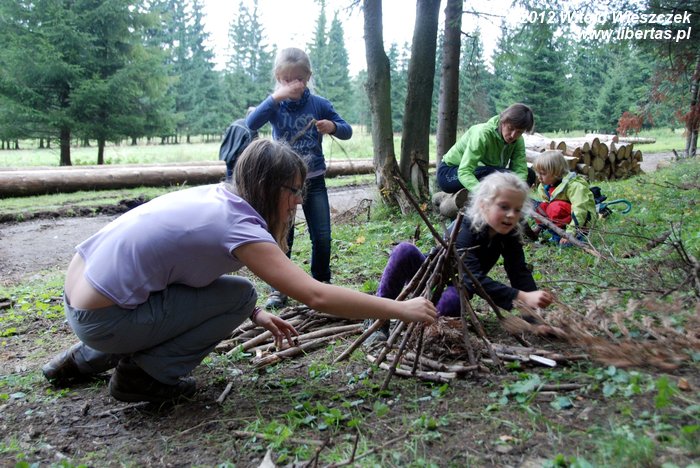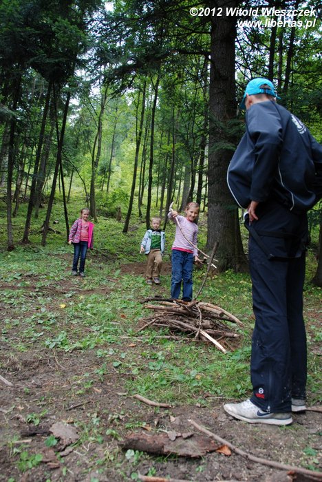 Na zakończenie pierwszej, trwającej około 6 godzin części spotkania, dzieci pod okiem męża pani Magdy uczyły się profesjonalnego budowania ognisk i dowiedziały, że są dwa główne ich typy: ogniska typu wigwam i typu studnia. Potem było jeszcze parę zabaw terenowych, a na końcu mały quiz wiedzy o Tatrach z nagrodami w postaci cukierków.