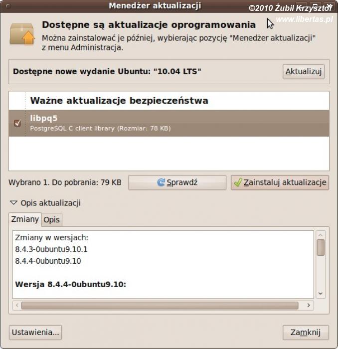 W nowym oknie zostaniemy poinformowani o tym, czy jest dostępna nowa wersja systemu. W tym przypadku dostępny jest update do 10.4 LTS (czym różni się wydanie zwykłe od LTS za chwilę).