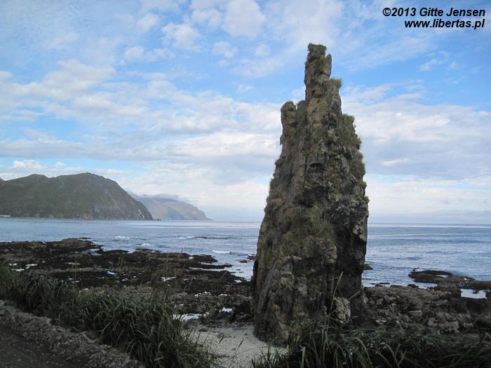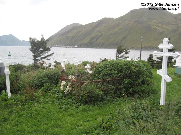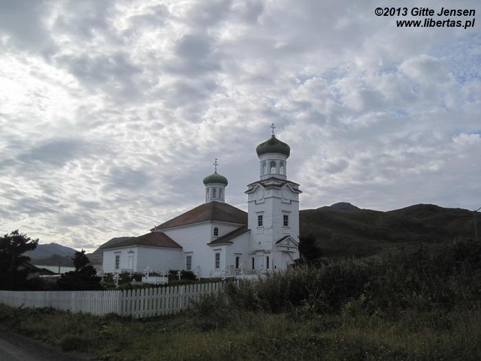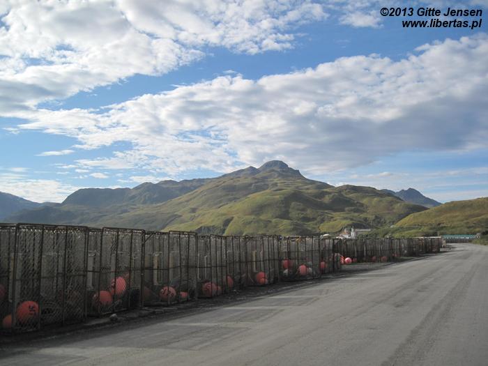 Miasteczka Dutch Harbor i Unalaska dzieli niewielki most, jednak istnieje tu zaskakująca odrębność – każde miasto ma swoje własne instytucje, a nawet oddzielne poczty! Pomimo że Dutch Harbor jest przytulniejsze, więcej do oglądania jest w Unalasce. Najciekawszym zabytkiem jest z pewnością najstarsza w Ameryce cerkiew prawosławna, której stan oceniłabym na bdb-, ze względu na łuszczącą się nieznacznie farbę na elewacji. Z Unalaski można pojechać dalej okrężną drogą nieco dalej w interior wyspy, co jest przepiękną wycieczką przy ładnej pogodzie. Krajobraz interioru jest grenlandzko-kurylski, chociaż widać różnice w fakturze skał i ich zawartości (np. tutejszy bazalt jest wymieszany z żelazem). Duże wrażenie zrobiła na mnie roślinność – cudowne kwiaty, wrzosy, kosodrzewina, etc. Oczywiście nie zawiodło również ptactwo – zobaczyć orły na dziko: bezcenne. Jednakże droga wiodąca przez interior jest ciężka – dużo zakrętów, wzniesień i spadków, a także ostre kamienie czyhające na słabość opon samochodowych. Na dodatek bardzo ograniczona jest tu komunikacja – telefony nie działają, z internetem też nie jest tu najlepiej, więc uziemienie z powodu złapanej gumy wiązałoby się z pieszą pielgrzymką do Unalaski.
