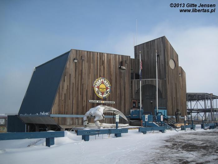 Barrow, nazwane tak na cześć brytyjskiego podróżnika Sir Johna Barrowa, to pięciotysięczne miasteczko pogrążone w wiecznej zimie. Jest to najbardziej północna osada USA i to właśnie znajdujący się nieopodal miasta Point Barrow jest skrajnie północnym punktem USA. Barrow jest 9. najbardziej północnym miastem świata i jednym z najbardziej przygnębiających miejsc na Ziemi, jakie widziałam. Osada powstała również ze względu na wydobycie ropy, jednak ma ono tutaj mniejszą skalę niż w Prudhoe Bay. Ze względu na ekstremalne warunki pogodowe niesprzyjające egzystencji, w miasteczku znajdują się instytucje i jednostki typowe dla innych miast – szkoły (a nawet college!), basen, banki, sklepy, poczta, a także 2 boiska: dla miejscowej drużyny footballu amerykańskiego i koszykówki. Aż strach pomyśleć, że zawodnicy trenują na zewnątrz nawet przy -40°C! Barrow przypomina bardzo Grenlandzkie osiedla, takie jak chociażby Qaanaaq, a przecież Barrow to wciąż AMERYKA, o czym bardzo łatwo można tutaj zapomnieć.