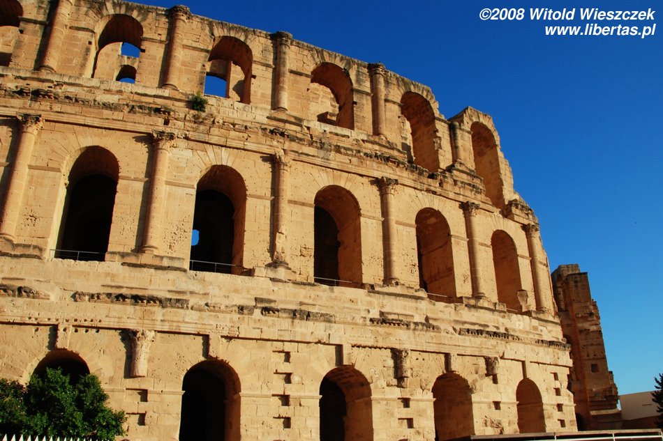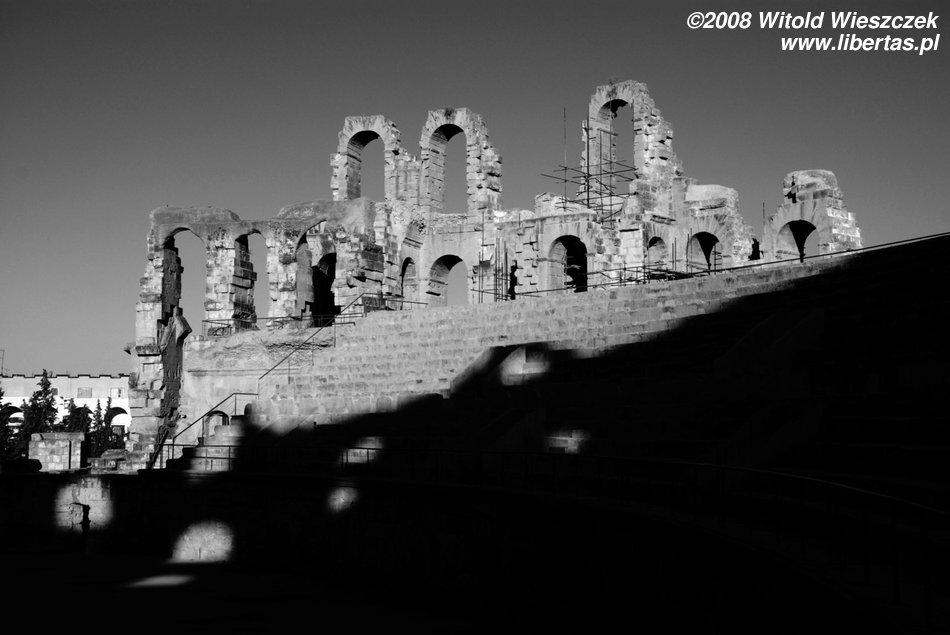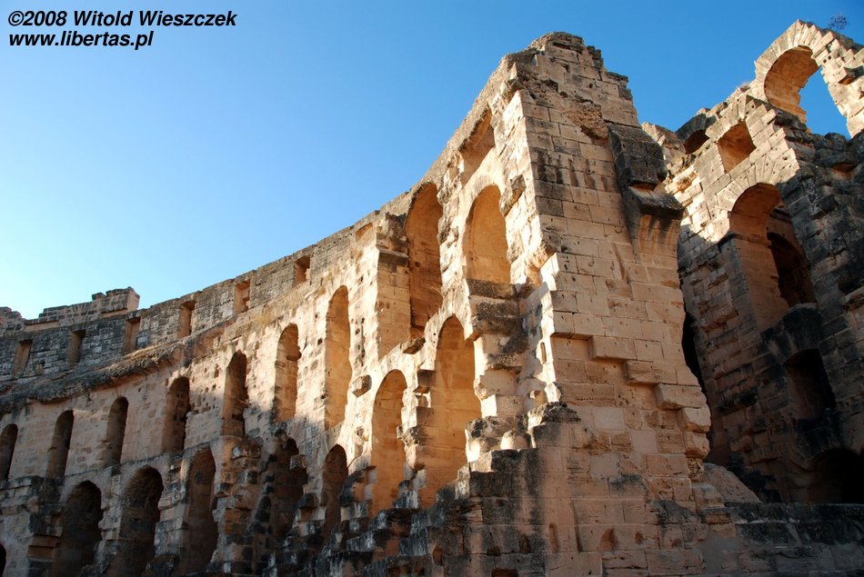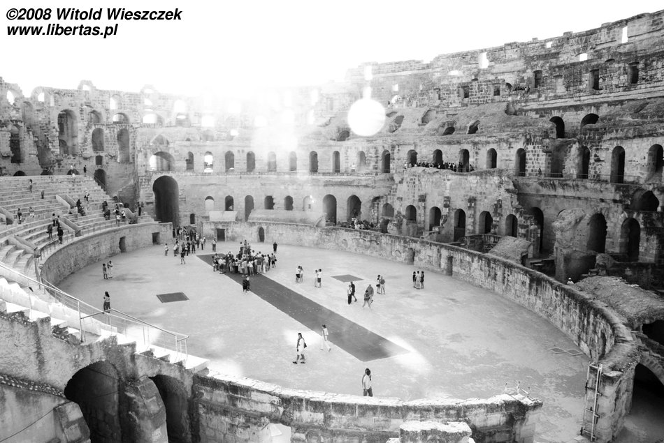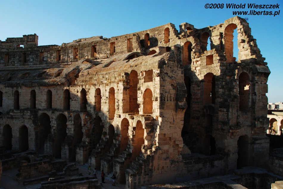 Thysdrus (El Jem nowadays) was founded in 46 B.C. on the site of a former Punic village. In the third century AD it even aspired to be the second (after Carthage) most important city of the Roman province of Africa. This is when, probably in 230–238 AD, on Gordian’s initiative (who was a Consul of that province), an amphitheatre was erected being inferior in height only to the Roman Coliseum and other famous arena located in Capua on which Spartacus was fighting battles. It is 149 metres long, 124 metres wide and 36 metres high, and could seat 30 thousand people during the Olympics!