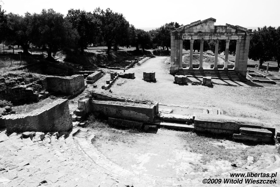 Apollonia was founded in 588 B.C. jointly by the Greek settlers from Corinth and Kerkyra (today Corfu), N.B. colonised by Corinthians in about 8th century B.C.1 The settlers were led by a man called Gylax and it was his name after which the city was given its first name – Gylakeia. Later, the name was changed to honour the god Apollo. Thirty other cities in Macedonia, Thrace, Crete or Italia honoured the god in the similar way2. For a change, we also have Aπολλωνία κατ' Επίδαμνον, i.e. Apollonia near Epidamnos – the city which was founded a bit earlier, in 627 B.C., also by the settlers from Corinth and Kerkyra. Apollonia, which this article refers to, was founded in the land that ancient people called Illyria. These days, the ruins of the city lie in Albania, close to Pojani village, 7 km from Fier.