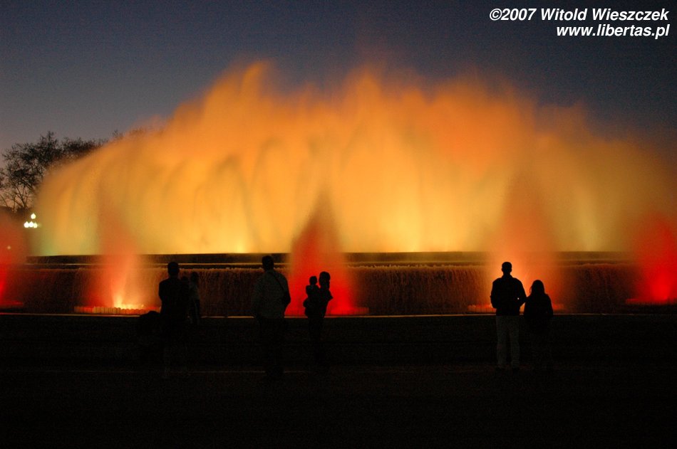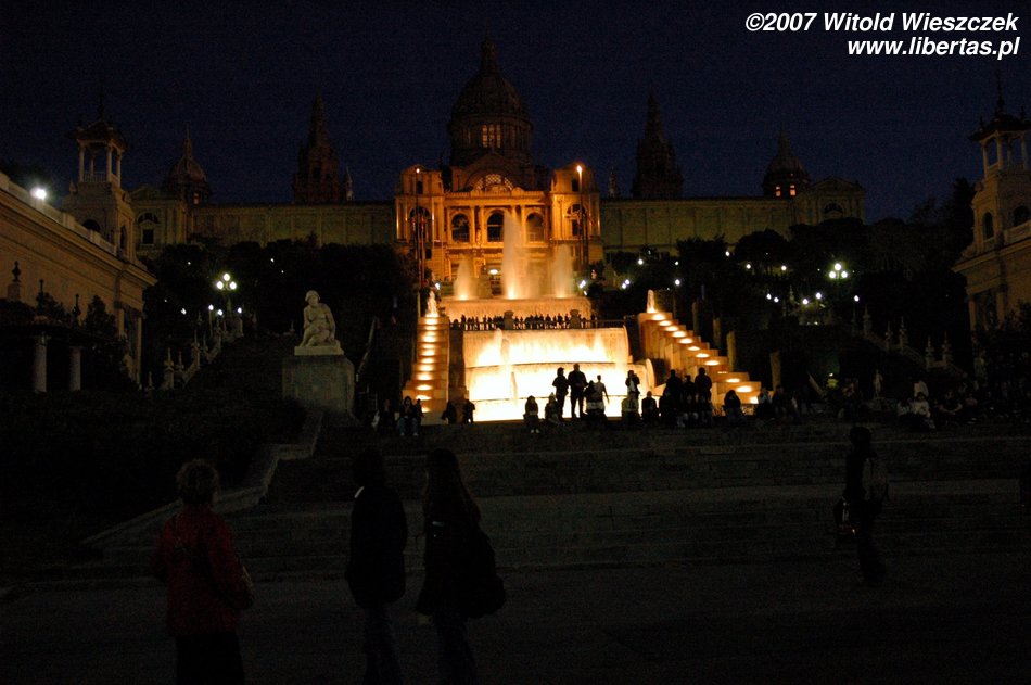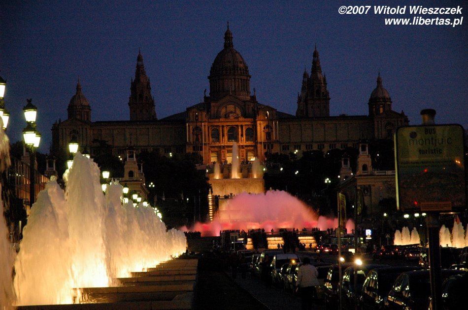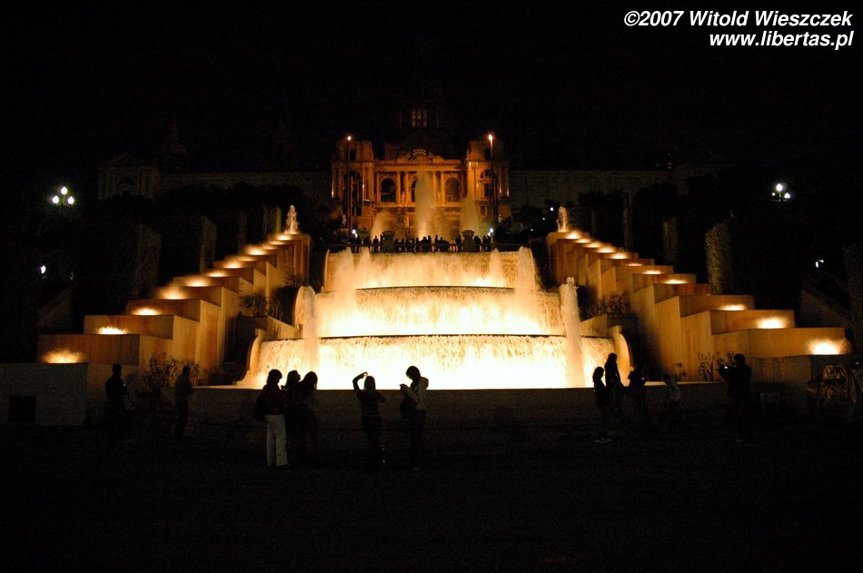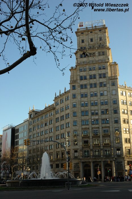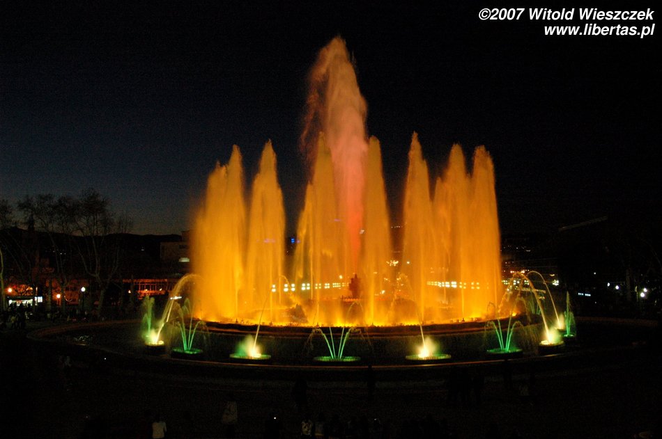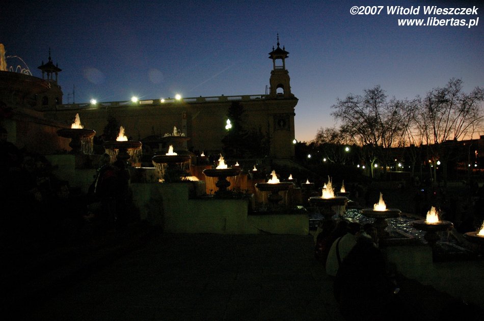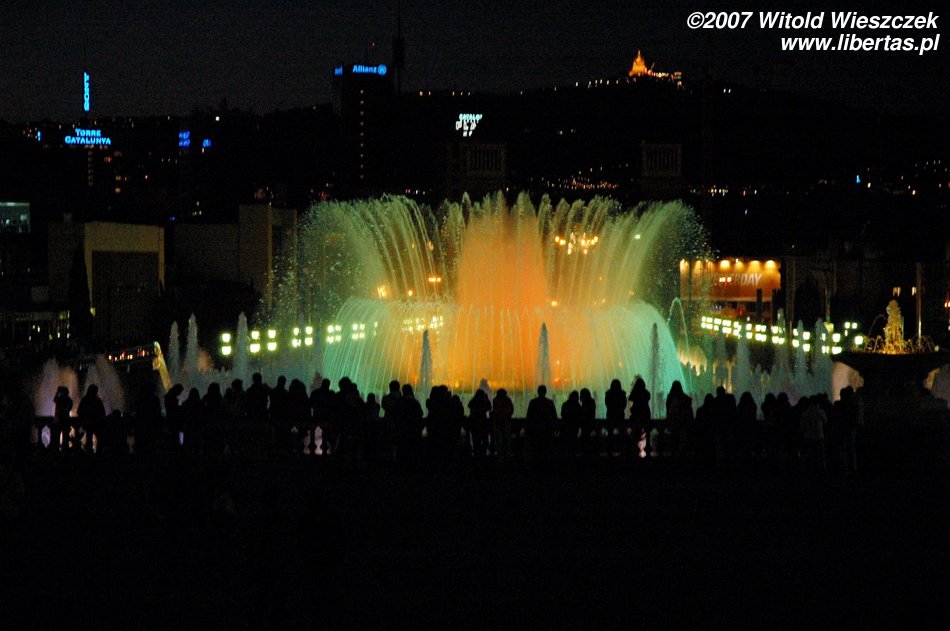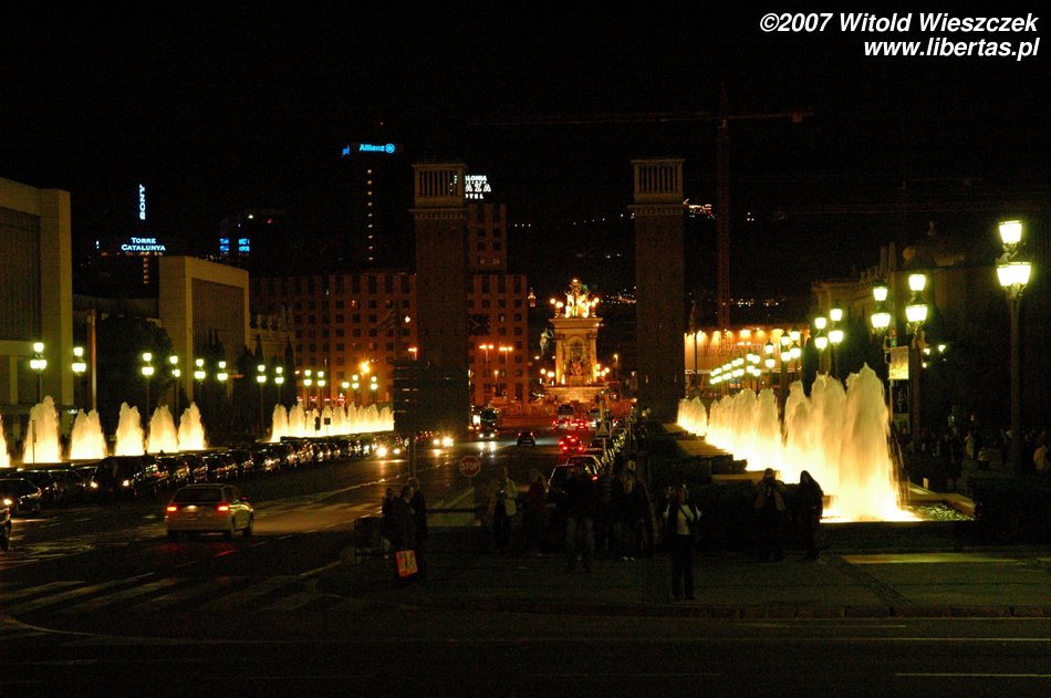 Znajduje się tam fontanna zaprojektowana w 1928 roku przez Józefa Marię Jujola, powstała w 1929. Co wieczór odbywają się tam prawdziwe spektakle światła, wody i dźwięku. Po drodze mijamy dwie bliźniacze Weneckie Wieże na wzór wieży na placu św. Marka w Wenecji, zaczęto je wznosić w 1928 r., wg projektu architekta Ramona Reventósa y Farraronsa.