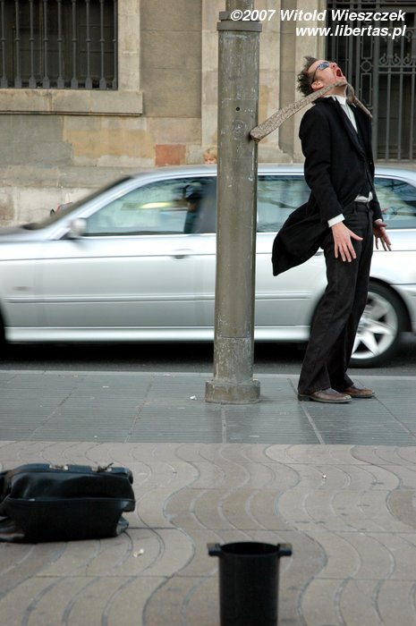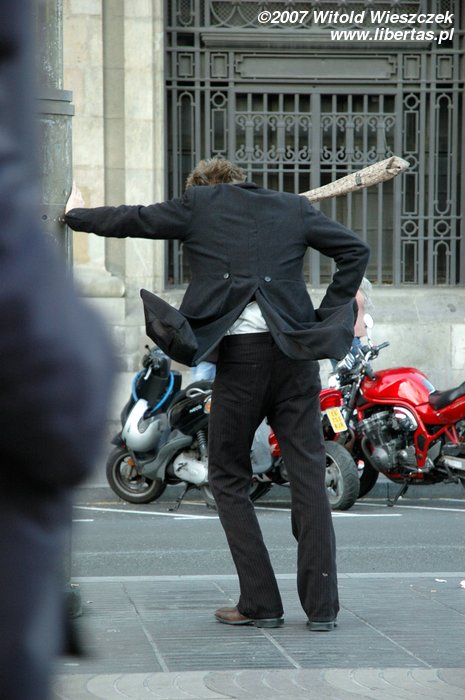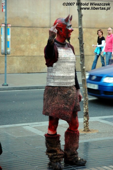 Barcelona... czegoż tu nie było? Edward Nożycoręki, taniec z wachlarzami, stół z powyłamywanymi nogami (chyba), a nawet bezczelny diabeł, ale wszystkich przebił facet walczący z wiatrem! Nie mogłem oderwać od niego obiektywu!