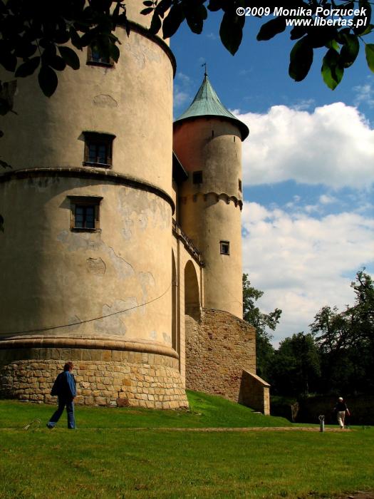 Już z daleka zamek wygląda imponująco. Położony na zalesionym wzgórzu budzi ciekawość i przyciąga turystów. Na zewnętrzny dziedziniec wchodzimy przez bardzo oryginalną bramę wjazdową. Od razu naszą uwagę przyciągają wysokie baszty, które dodają całej budowli smukłości. Niestety same mury zamkowe nie są aż takie stare jakby się zdawało, pochodzą z 1949 roku, gdy to rozpoczęto prace renowacyjne a w konsekwencji odrestaurowano je.