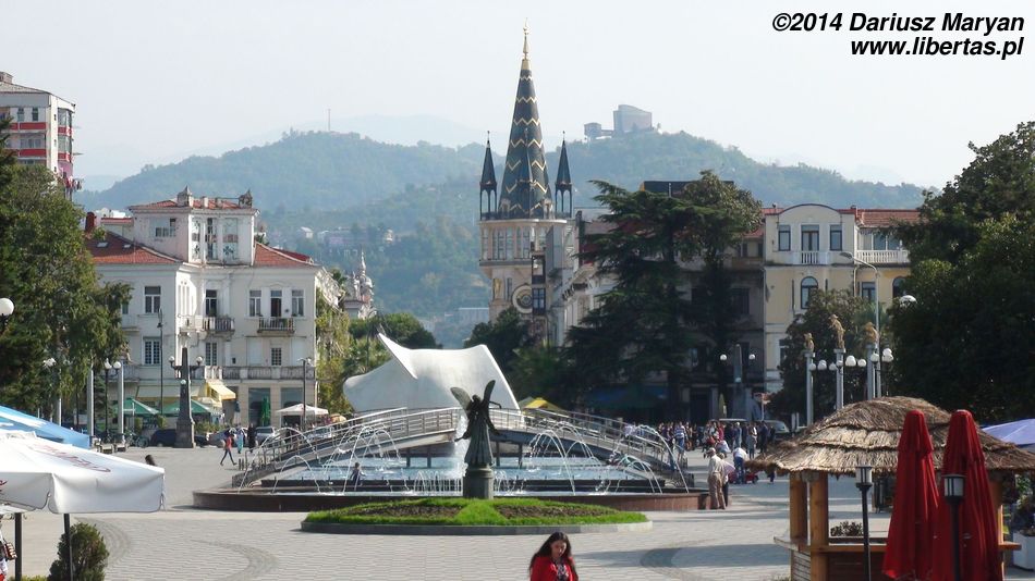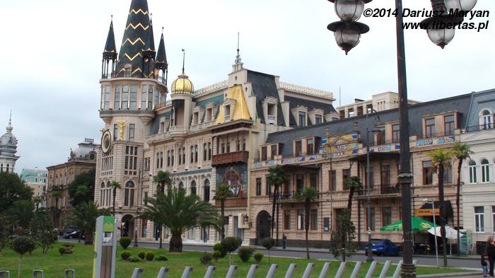 Zaczęliśmy od Parku Szóstego Maja, miłego miejsca z małym jeziorkiem pośrodku. Po drugiej stronie dumnie wznoszą się dwa wieżowce Hiltona. Następnie spacerowaliśmy po najbardziej reprezentacyjnych dzielnicach miasta, takich jak: Plac Europejski, z zegarem astronomicznym i kolumną kolchidzką (Medei), Plac Piazza żywcem wyjęty z włoskiego miasta, plac z fontanną Neptuna przy Radisson Blu i wielu innych niesamowitych miejscach.