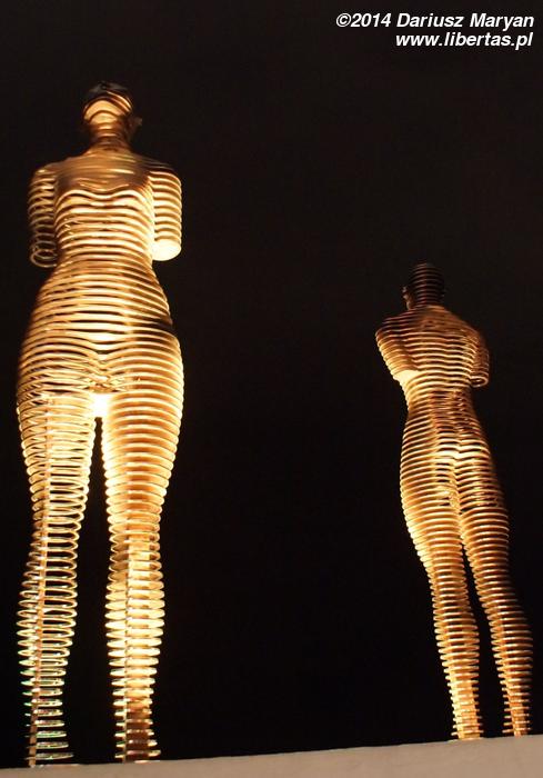 Zwiedzanie miasta rozpoczęliśmy od spaceru po nadmorskiej promenadzie, która ciągnie się kilometrami. Pierwszym jej punktem jest fontanna, z której podobno przez chwilę każdego wieczora leje się czcza. My jednak wtedy byliśmy w innej części miasta i niedane nam było tego sprawdzić. Ciekawa jest znajdująca się niedaleko ruchoma rzeźba Ali i Nino, która szczególnie pięknie prezentuje się nocą. Przedstawia ona historię miłości młodego Azera muzułmanina oraz gruzińskiej księżniczki chrześcijanki, która miała miejsce w czasach I Wojny Światowej. Posągi o wysokości ośmiu metrów są dziełem rzeźbiarza Tamara Kvesitadze.