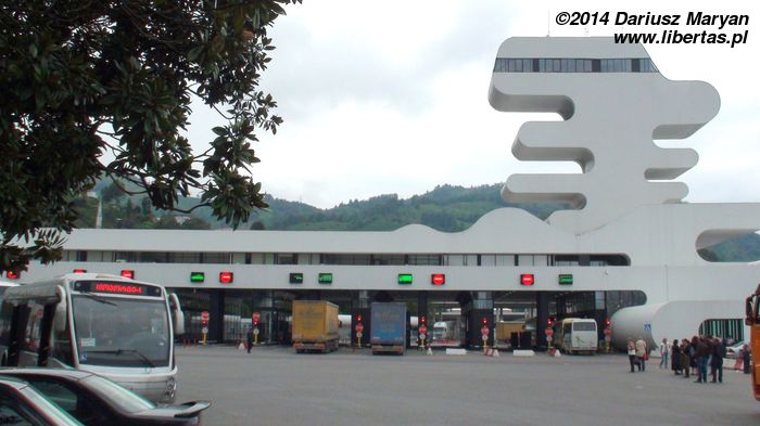 Drugiego dnia pobytu w Batumi z samego rana pojechaliśmy maszrutką na granicę z Turcją do Sarpi. Chcieliśmy zobaczyć tamtejszy budynek przejścia granicznego, który wg przewodnika miał kształt wielkiego klucza. W zamyśle twórców miał on symbolizować swoisty pomost pomiędzy Azją i Europą.