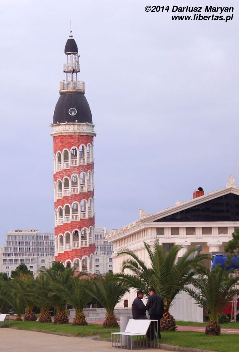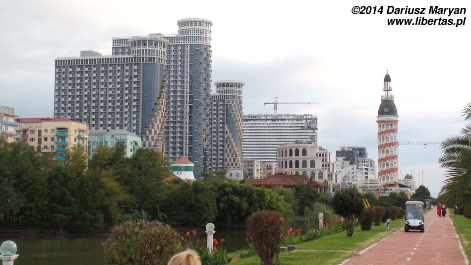 Po powrocie do centrum poszliśmy do portu na rybkę. Podobno pochodziła z porannego połowu. Pozostałą część dnia przeznaczyliśmy na dokończenie spaceru po promenadzie, która od Sheratona ciągnęła się jeszcze kilka kilometrów na południe. Poza kolejnymi pomnikami można tam zobaczyć nowy, choć już niszczejący budynek imitujący grecki Partenon, restaurację z wieżą widokową, nowoczesne apartamentowce przypominające te w Tel Awiwie, hotel wzorowany na Koloseum i inne bardziej lub mniej wyszukane budynki. W niektórych miejscach wydaje się, że Gruzinów chyba jednak za bardzo poniosła fantazja. Miało być pięknie i oryginalnie, a tu i ówdzie wyszła cygańska wioska.