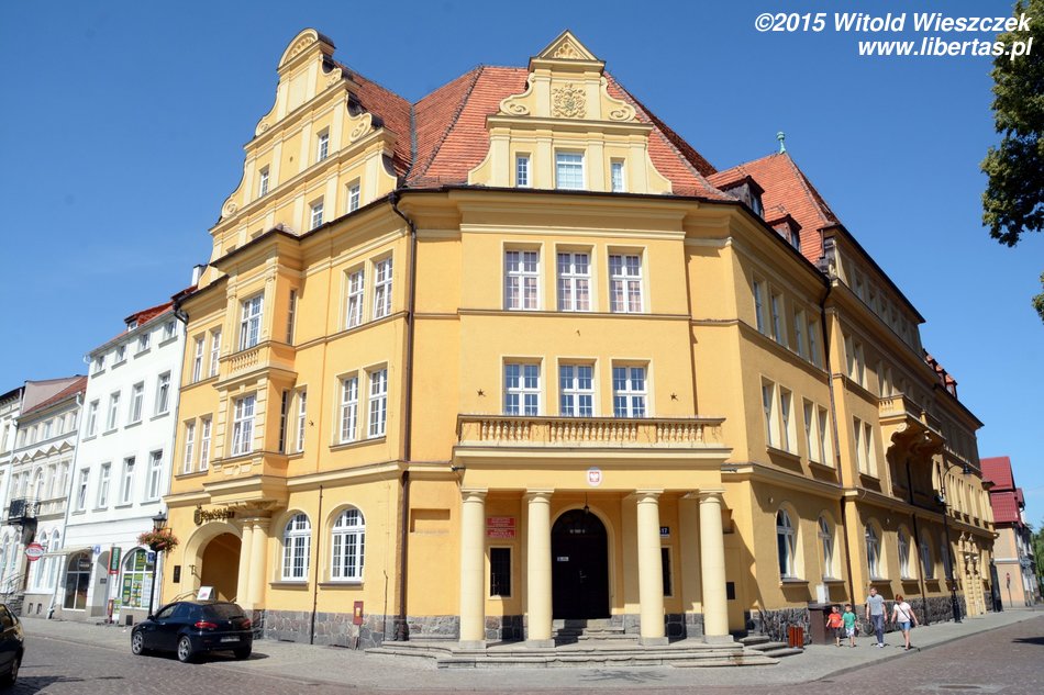 Po drugiej stronie rynku stoi stary ratusz – klasycystyczna kamienica kupiecka wybudowana z cegły w 1827 roku. W 1847 roku dobudowana została do niego drewniana wieża zegarowa o konstrukcji słupowej. W roku 1924 ukończono budowę nowego ratusza, do którego przeniosły się miejskie władze. Później w starym budynku mieściło się muzeum, a od lat 50. mieszkania komunalne. Po zakończeniu gruntownego remontu w roku 2004 budynek ponownie stał się siedzibą muzeum.