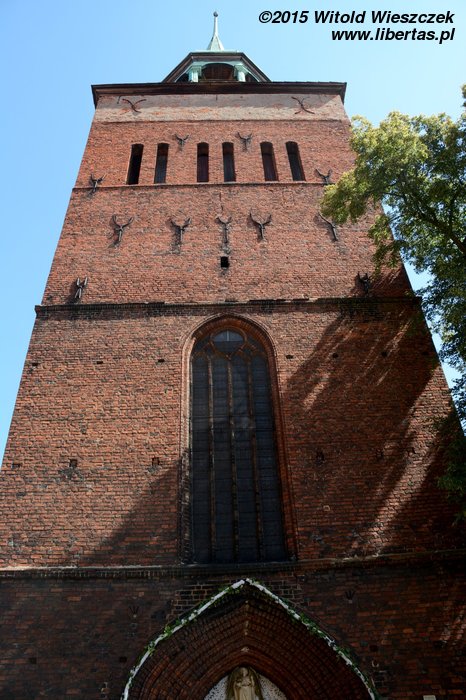 Jest to trójnawowa bazylika z trójbocznie zamkniętym prezbiterium wymurowana z cegły w układzie wendyjskim2 na fundamencie kamiennym. Niestety nie dało się wejść do środka, ale zza krat widać było barokowy ołtarz z XVIII wieku, a częściowo nawet wykonane po II wojnie światowej polichromie.