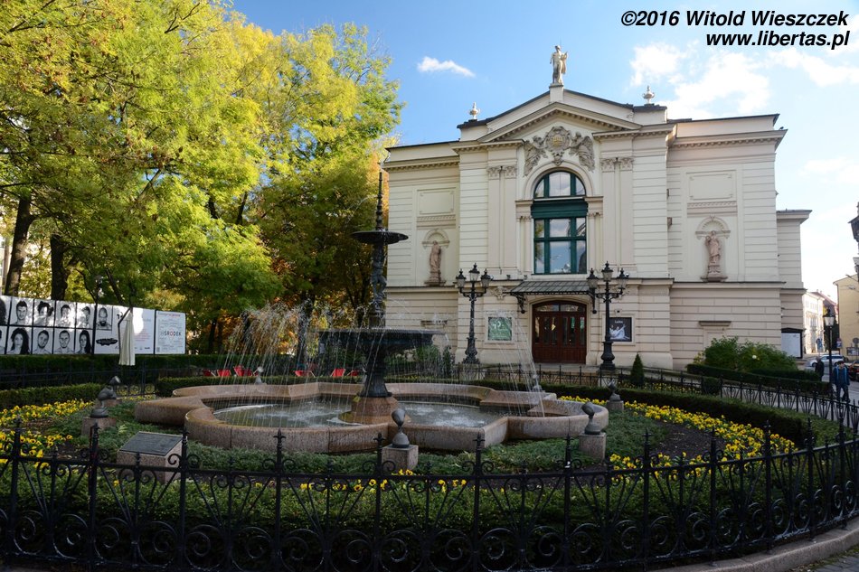 Po wyjściu z dworca skręcamy w lewo i idziemy cały czas prosto. Po drodze koniecznie trzeba zwrócić uwagę na tworzącą klimat ulicy 3 maja przepiękną zabytkową zabudowę. Większość z tych budynków zaprojektował Karol Korn („Promenada Korna”), naśladując architekturę Wiednia. Są to przeważnie okazałe trzypiętrowe neorenesansowe, neobarokowe lub secesyjne kamienice. Podobne budynki znajdziemy zresztą w wielu zakątkach miasta, stąd popularne określenie miasta – Mały Wiedeń. Po około 15 minutach (1 km) dojdziemy do Teatru Polskiego.