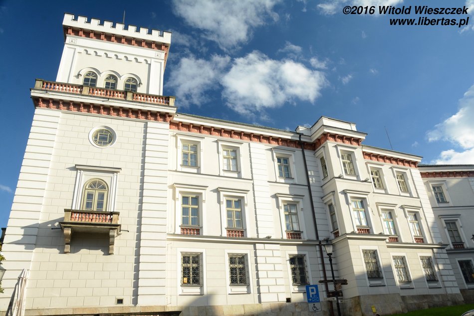Początkowo zamek był ważnym elementem obwarowań miasta, zwłaszcza że często przypadała mu rola warowni granicznej. Z czasem jednak jego funkcja obronna zmalała, a zamek przekształcił się w rezydencję szlachecką. W 1752 roku przeszedł w ręce rodu Sułkowskich, w których pozostawał do końca II wojny światowej – stąd nazywany jest zamkiem Sułkowskich. Z jego pierwotnego wyglądu właściwie nic nie pozostało, obecną postać otrzymał podczas generalnej przebudowy z drugiej połowy XIX wieku. Obecnie w zamku mieści się Muzeum Historyczne. Warto okrążyć zamek, podchodząc na jego mury, skąd będziemy mieć ładny widok na teatr i sąsiadujące kamienice...