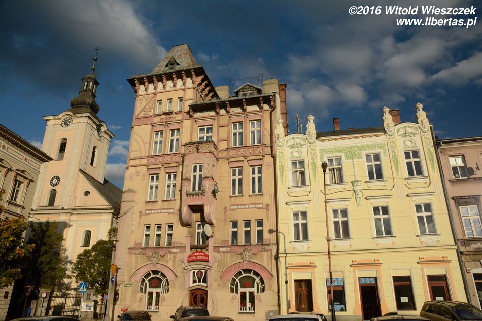 Spod Ratusza bez problemu trafimy na dawny rynek Białej Krakowskiej wytyczony w roku 1723, gdy Biała otrzymała prawa miejskie. Istniejący tutaj parking trochę szpeci ten piękny plac (podobno planowana jest jego przebudowa), ale i tak warto go odwiedzić, choćby ze względu na mieszczące się przy nim oraz w okolicy piękne kamieniczki. Warto zwrócić uwagę między innymi na klasycystyczny kościół ewangelicki Marcina Lutra (1792–1798), neorenesansowa kamienicę Kuno von Pongratza, Pałacyk Strzygowskich, budynek starego ratusza, czy secesyjną kamienicę „Pod Żabami”. Z tą ostatnią wiąże się ciekawa historia: nad jej bocznym wejściem znajduje się portal z figurami dwóch żab ubranych we fraki, z których jedna gra na instrumencie a druga pije i pali fajkę. A dlaczego nie nad reprezentacyjnym wejściem od strony rynku? Bo właściciel chciał w ten sposób wyrazić swoje lekceważenie ewangelikom, których kościół znajduje się właśnie z tej strony.