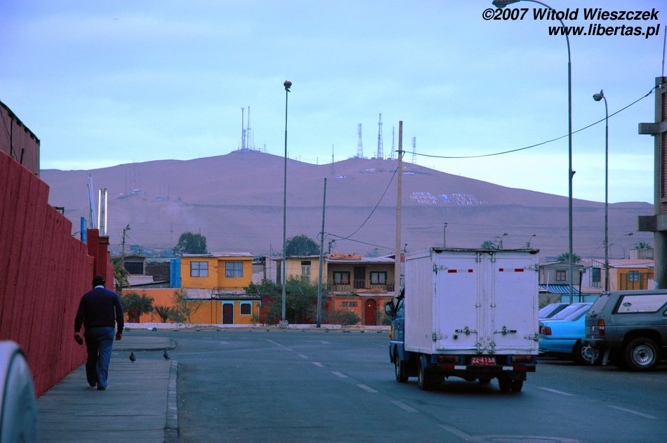 Przez całą noc jedziemy do Arici nad oceanem. Autokar jest bardzo wygodny, trzeba przyznać, że transport drogowy w Chile, a nawet w Peru stoi na o wiele wyższym poziomie niż w Polsce. Na dworcu w Arica odbiera nas kierowca, który wiezie nas przez granicę do Tacny w Peru. W Tacnie przejmuje nas Lizeth, która dotrzymuje nam towarzystwa, pomaga mi wybrać kapelusz, a na koniec pije z nami piwo. Dziękujemy za wszystko!