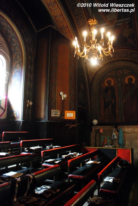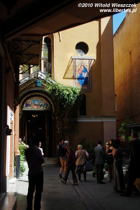 Wśród zabudowań, na północny-wschód od ratusza, „ukrywa się” wybudowana w 1896 roku neobizantyjska cerkiew prawosławna Narodzenia Matki Boskiej. Aby do niej wejść musimy przejść przez bramę, a następnie małe podwórko. Jeśli akurat będzie sobota, macie szansę zobaczyć ceremonię ślubu, która oczywiście różni się od tych jakie oglądamy w naszych kościołach, jak widać na zdjęciach młoda para na przykład okrąży trzykrotnie ołtarz...