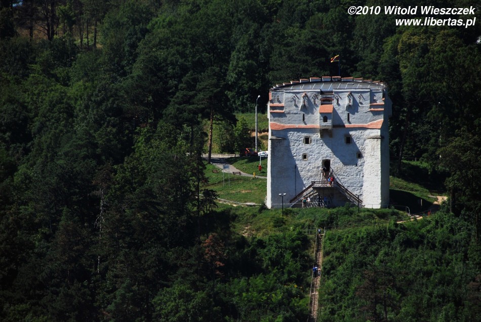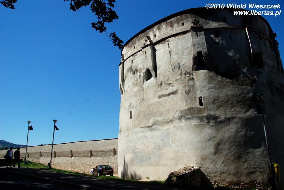Zaraz za bramą skręcamy w lewo (w uliczkę Aleea Tiberiu Brediceanu) i mijając jakiś kompleks sportowy z kortami tenisowymi dochodzimy do XVI-wiecznej baszty Tkaczy – to najlepiej zachowana baszta ze wszystkich siedmiu miejskich baszt. U podnóża góry znajduje się bardzo przyjemny park. Spacerując jego alejkami można obejrzeć dobrze zachowane fragmenty dawnych fortyfikacji wznoszonych od końca XIV wieku do roku 1641. W parku znajduje się też dolna stacja kolejki linowej, którą można wyjechać na wysokość 960 metrów n.p.m..