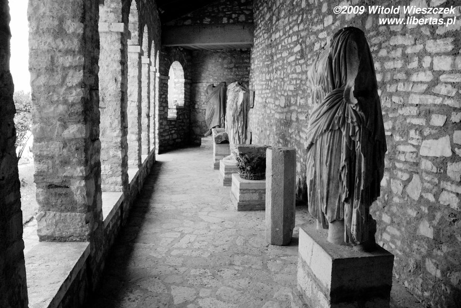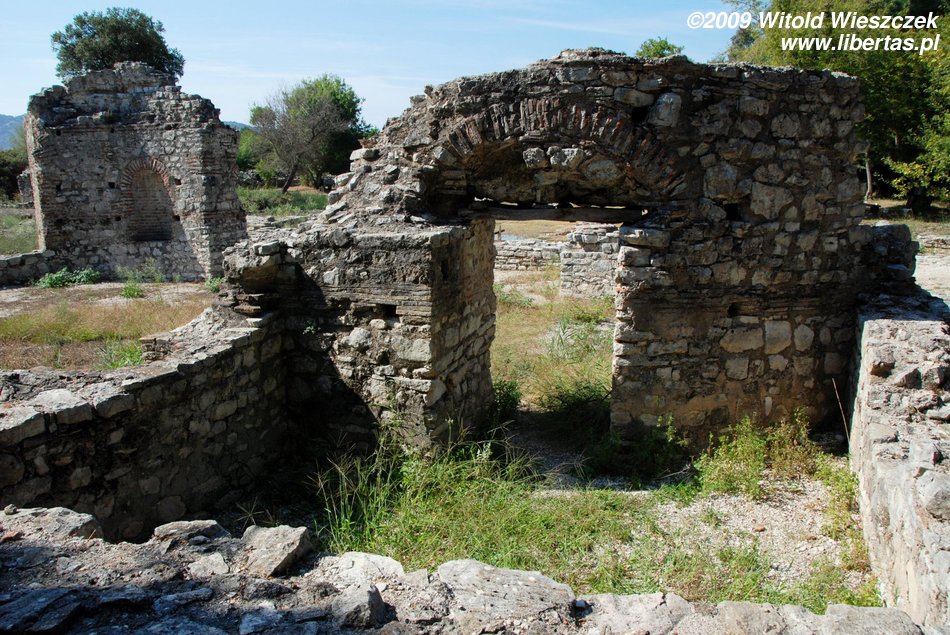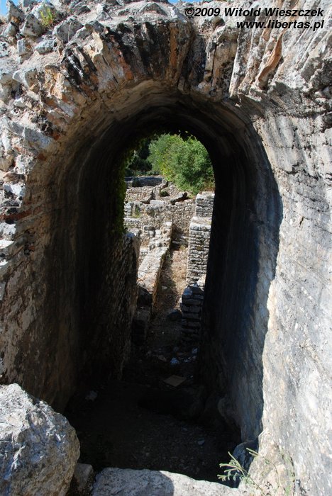 Just next to the basilica we can notice the foundations of so called the Gate with Towers. The rectangular tower was joined to the city walls which were built of big calcareous blocks fitted without mortar. This part of the walls and towers were erected c. the 3rd c. BC when Illyrian tribes dominated this area. Walking along the walls we can get to the well-preserved 5 m high Scaean Gate dated on c. the 4th c. BC, which Aeneas couldn’t see, but Vergil ascribed the following words to him: