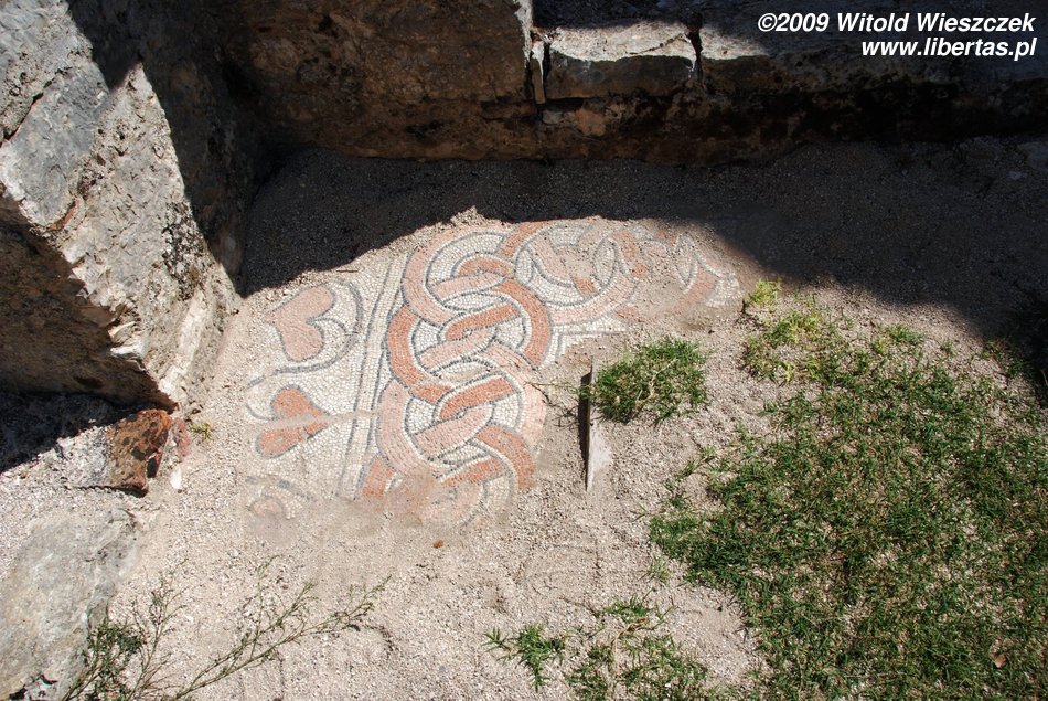 Nearby, there is the well-preserved basilica built in the same period as the baptistery, i.e. at the beginning of the 6th c. It had three naves and transept (i.e. the area set crosswise to the nave), was richly ornamented and its floor was covered with a mosaic created probably by the same craftsmen, who laid the mosaic in the baptistery.