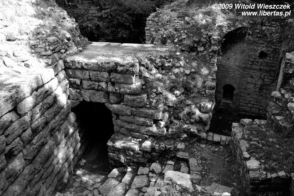 Just after crossing the gate the sight of the tower meets our eyes. In front of it there are the remains of thermae, i.e. a Roman bath complex. In the northern part of it there was a frigidarium, i.e. a room with cold water, whereas in the southern - a calidarium, i.e. a room with central heating (hypocaustum) where a pool with hot water was placed.