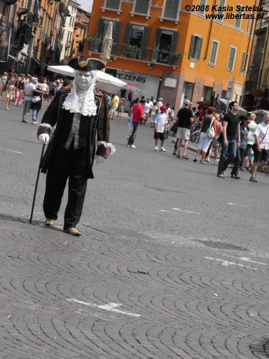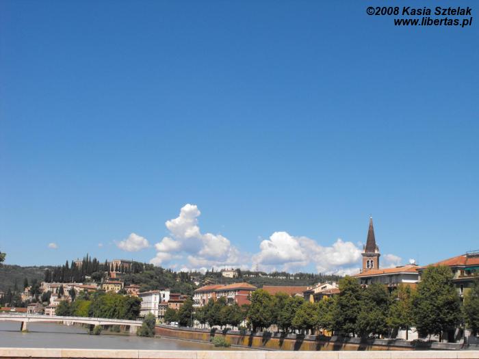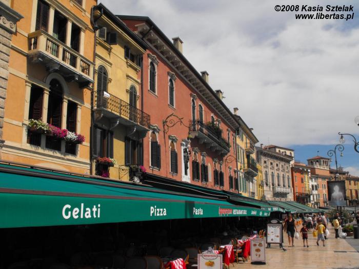 Pogoda mi dopisała. Zwiedzałam Weronę, a wystawione na zewnątrz stoliki knajpek i zapach wydobywającej się z nich kawy skusiły mnie, aby wybrać miłą, przytulną kawiarenkę i wypić smaczne cappuccino w promieniach włoskiego słońca. W Weronie ciężko znaleźć miejsce, gdzie można schować się przed słońcem.