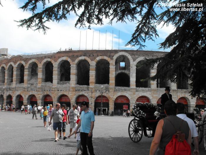 Werona to miasto wielu zabytków z czasów rzymskich m.in. amfiteatr z I wieku. Podczas trzęsienia ziemi w 1183 roku część zewnętrzna areny zawaliła się i pozostały jedynie cztery łuki. W części wewnętrznej, która nie została naruszona, obecnie wystawia się opery (na widowni może zasiąść 22 tysiące widzów). Będąc w Weronie, warto zakupić bilet, aby móc podziwiać panoramę miasta z jej tarasów.