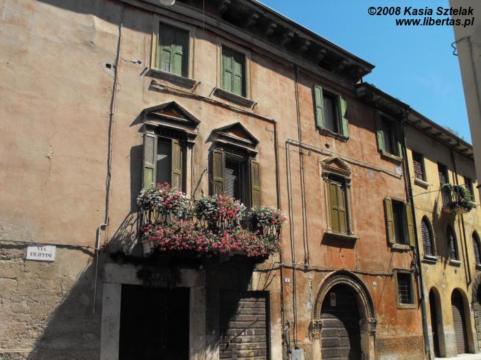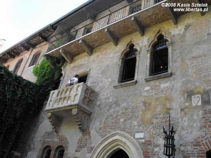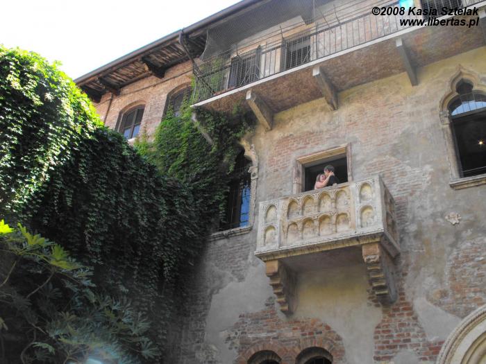 Będąc w Weronie i ja musiałam zobaczyć słynny balkon Julii (oczywiście wstęp na balkon też kosztuje – około 6 euro). Słynny dom Julii znajduje się przy via Capello 23. Utożsamienie prawdziwego nazwiska Capello (rodu patrycjuszy, którego własnością był XIII wieczny pałac) z fikcyjnym Capuletti (Julia), dało podstawy przekonaniu, że tutaj właśnie musiała mieszkać Julia.