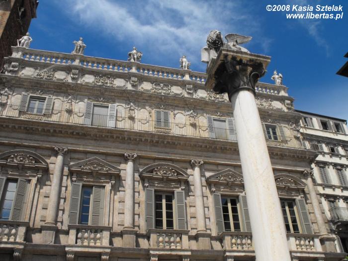 Po pysznej kawie wśród malowniczych uliczek dotarłam do Pizza delle Erbe, gdzie powitał mnie malowniczy targ z gadatliwymi sprzedawcami oferującymi liczne pamiątki i pyszne owocowe desery, których barwy przyciągały wzrok. W Weronie znajduje się także Palazzi – zbudowane z Rosso di Verona – miejscowego wapienia o różowym odcieniu – przez średniowiecznych władców miasta.