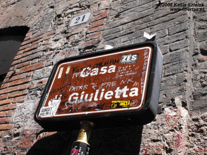 Jednym z najważniejszych zabytków Werony jest Kościoł San Zeno Maggiore ze słynnymi średniowiecznymi drzwiami z brązu, ozdobionymi znakomitymi płaskorzeźbami o treści biblijnej i ze scenami z życia patrona kościoła. Ostatnim etapem mojego zwiedzania Werony był dom Julii (wł. Casa di Guilietta).
