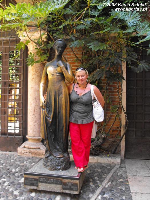 Na podwórzu pod zrekonstruowanym słynnym balkonem stanął brązowy posąg Julii dłuta Nereo Constantiniego. Dotknięcie piersi Julii podobno przynosi szczęście, więc ta część ciała jest tak wygłaskana i wypolerowana przez tysiące spragnionych miłości rąk, że świeci z daleka.