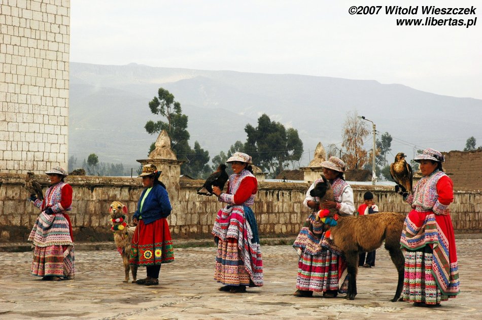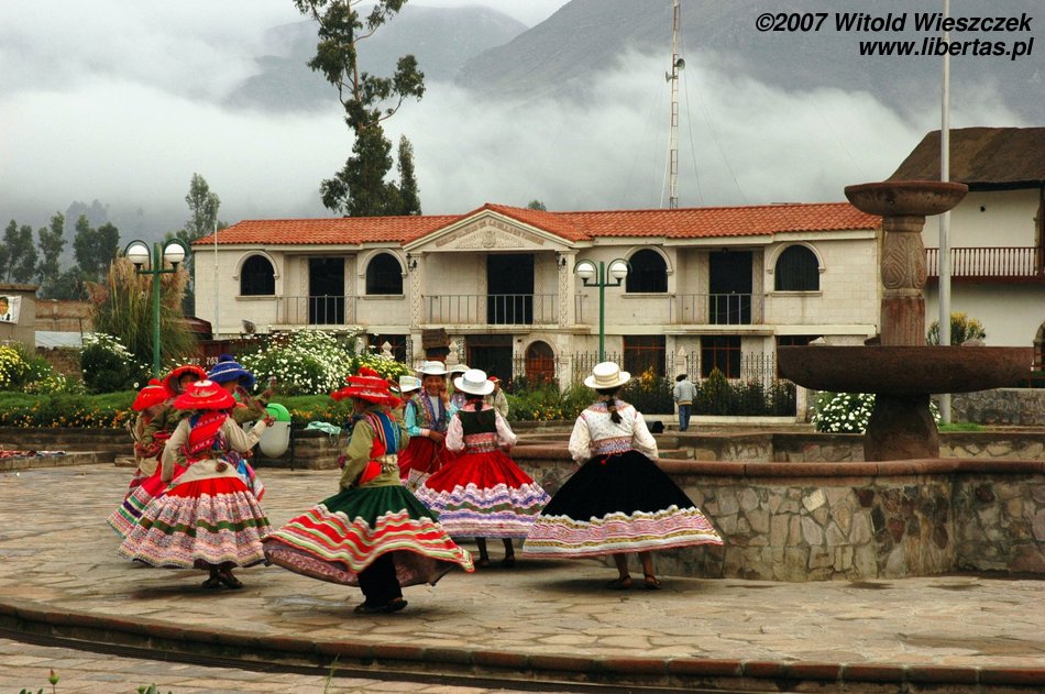 Dzisiaj jedziemy w położone na wysokości 3450 m n.p.m miejsce zwane Cruz del Condor, po drodze kilka razy zatrzymujemy się, by podziwiać zapierające dech w piersiach widoki. Odwiedzamy też Yanque, w którym znajduje się trochę podniszczony kościółek z unikalną na skalę światową barokową fasadą. Na (zgaduje w ciemno) Plaza de Armas tańczą dla turystów Indianki.