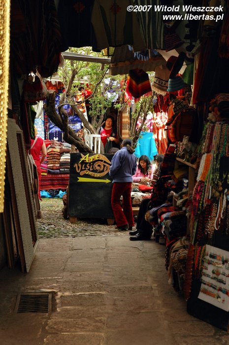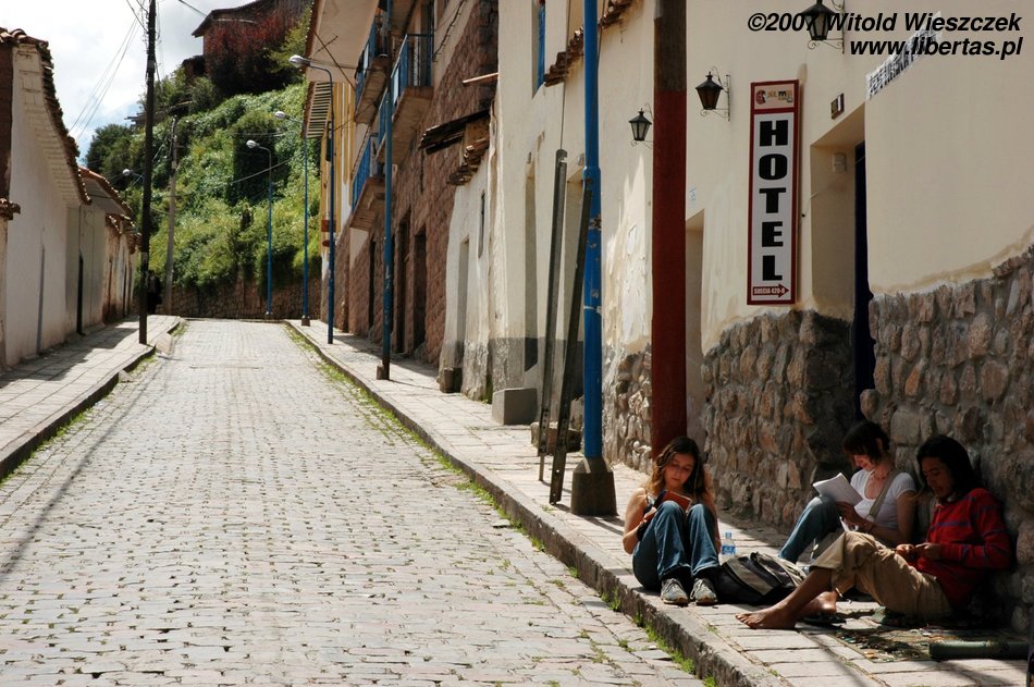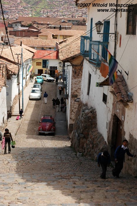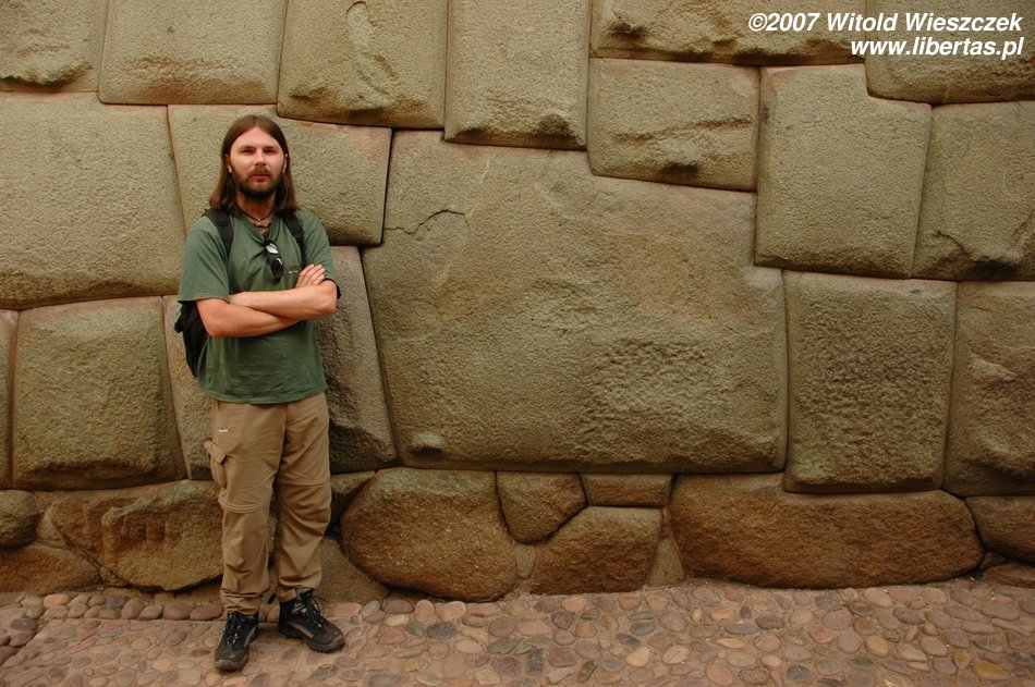 Nadal jednak można podziwiać mistrzostwo inkaskich budowniczych, jakaś dziejowa sprawiedliwość sprowadzała tutaj często trzęsienia ziemi, które niszczyły hiszpańskie świątynie, nie naruszały jednak ich inkaskich fundamentów. Inkowie nie używali zaprawy, dopasowywali jednak do siebie kamienie tak starannie, że w szczeliny między nimi nie można włożyć włoska! Nie są im straszne żadne trzęsienia ziemi! Przykładem tego mistrzostwa jest słynny dwunastokątny kamień znajdujący się w murach pałacu należącego do Inki Rocy, przerobionego przez Hiszpanów na Bóg jeden wie co. Jak sobie pomyślę, że oni uważali siebie za cywilizowanych ludzi, to mnie krew zalewa!