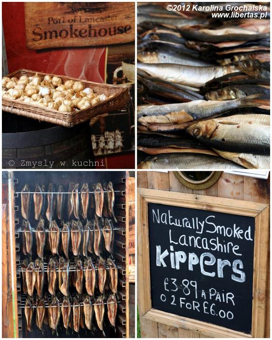Kippers - wędzone śledzie. Raczej dla smakoszy. Można doznać szoku, gdy dostaniemy je na śniadanie np. w Szkocji. Świeże i dopiero co uwędzone rozłpywają się w ustach. Na zdjęciu wędzarnia Port of Lancashire.