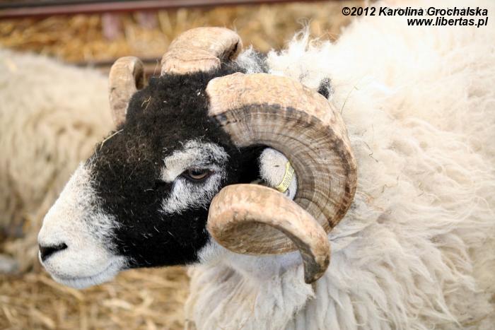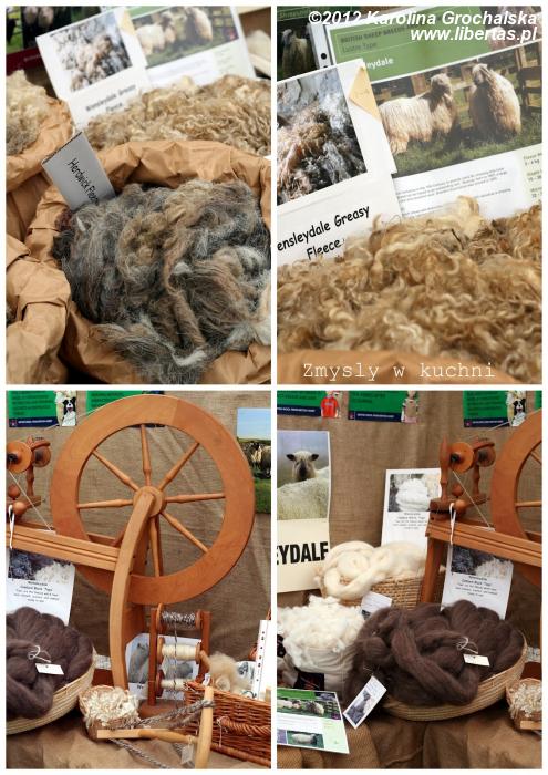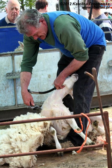 Z innych fachów można było zobaczyć strzyżenie owiec. Pan na zdjęciu ma 50‑letnie doświadczenie w tym zawodzie. Można było również podziwiać piękną owcę, rasy Swaledale oraz ekspozycję pozwalająca dotknąć i poczuć różnicę między wełną pochodzącą z różnych ras owiec (a brytyjskich ras jest ponad trzydzieści.)