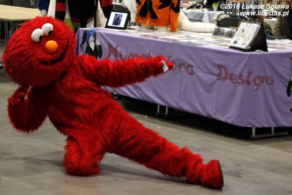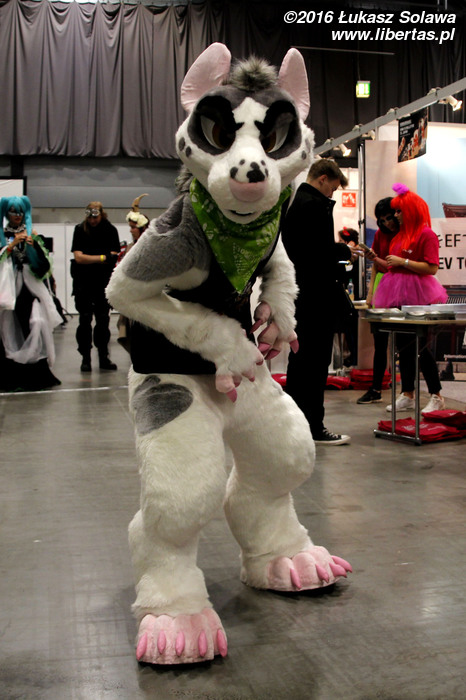 I w końcu była też grupa, naszym zdaniem najciekawsza – ci, którzy swoje przebrania, a także fryzury czy makijaże wykonali w sposób mało komercyjny. Nie pokusimy się o stwierdzenie, że wykonali je samodzielnie, bo nie każdy ma zacięcie artystyczne, a niektóre stylizacje były tak dopracowane, że chyba niemożliwością jest namalowanie czegoś takiego samemu sobie na twarzy (No przynajmniej ja bym nie dał rady – Ł.S.). Oczywiście nie wszystko można zrobić samemu, dlatego niektóre detale wykorzystane przez tych cosplayerów również pochodziły z hobbystycznych sklepów. Były to jednak pojedyncze elementy – kolorowe soczewki kontaktowe, wisiorki czy sztuczne szpony – a nie całe, gotowe kostiumy. W tej grupie na wyróżnienie zasługuje zwłaszcza artystka z Danii (na zdjęciach w bogato zdobionej, barokowej sukni), która swoją kreację wykonała w całości własnoręcznie, poświęcając na to tysiące godzin... I to właśnie takich ludzi chcieliśmy uchwycić na zdjęciach jak najwięcej – ludzi z pasją, dla których cosplay to często nie tyle hobby, ile styl życia. Była jeszcze jedna grupa przebierańców, ze względu na gotowe kostiumy trochę podobna do tej hollywoodzkiej, ale bardziej śmiechowa i... mechata. Roboczo nazwaliśmy ich „pluszaki” i tak już zostało. A chodzi tu o ludzi przebranych w gotowe futrzane kostiumy – psiaki, smoki, szczury czy wspominani już bohaterowie ulicy Sezamkowej. Wszystkim im współczuliśmy w równym stopniu, zwłaszcza w sobotę, kiedy to lato zawitało do Norwegii na cały, długi dzień. Co chwilę któryś z pluszaków wychodził z hali na zewnątrz i zrzucał z siebie przebranie lub tylko „zdejmował głowę”, cokolwiek, byle chwilę odetchnąć a wtedy okazywało się, że większość maskotek to przedstawicielki płci pięknej. Na szczęście dla nich niedziela była deszczowa i chłodna.