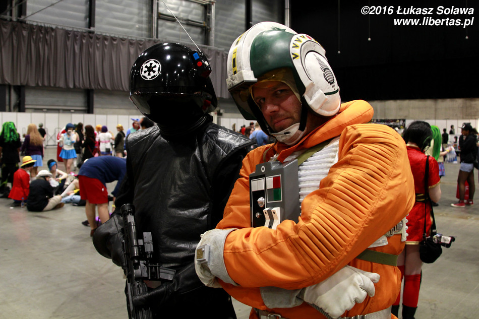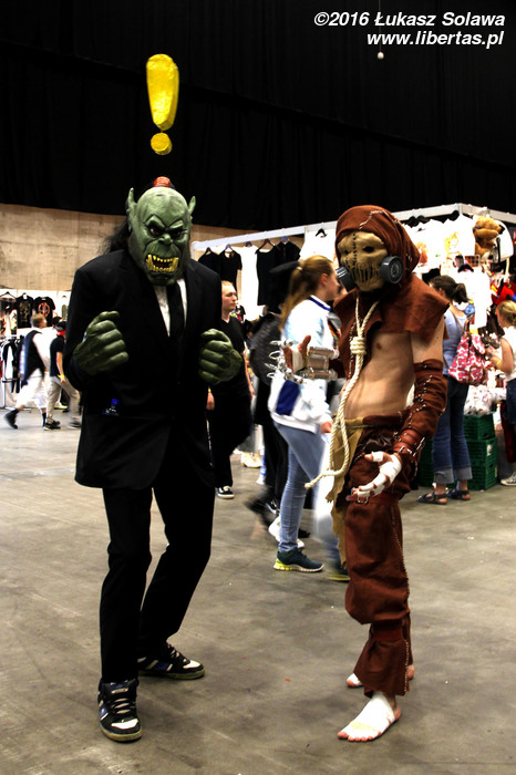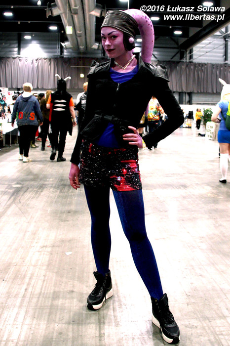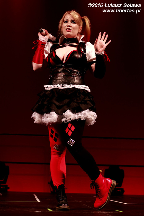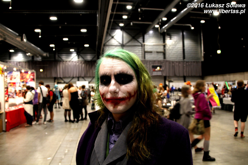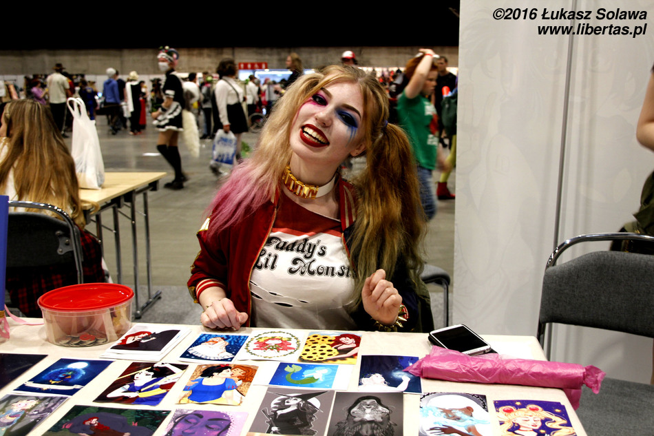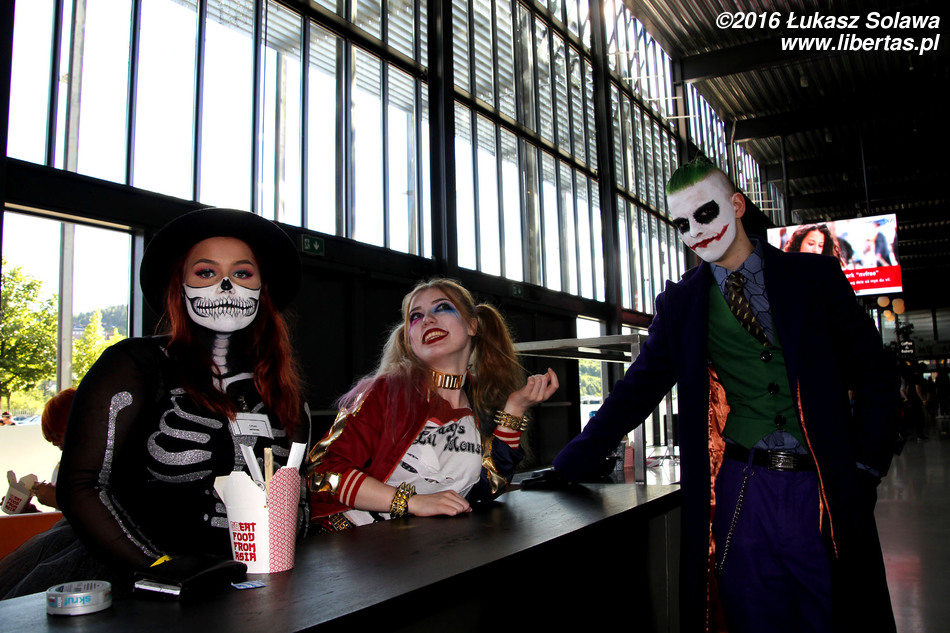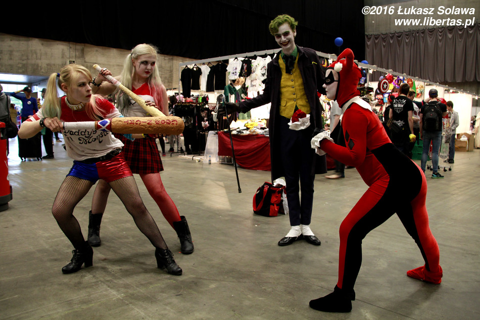 Jeśli chodzi o popularność przebrań, to w tym roku zdecydowanie rządziła Harley Quinn oraz Joker. Za tą pierwszą widzieliśmy przebranych sześć dziewczyn, z czego cztery wystąpiły w kreacjach nawiązujących do „Suicide Squad” a dwie do komiksów. Natomiast Jokerów było tylko pięciu i żaden z nich nie wyglądał jak wokalista Marylin Manson... Dla porównania Batman był chyba tylko jeden. No cóż, bohater musi być sam. Swoją drogą co do liczby osób wcielających się w różne postaci, to nie możemy zagwarantować, że było ich łącznie tylko tyle. Impreza trwała trzy dni, a my nie przebywaliśmy tam bez przerwy. Zdarzali się cosplayerzy, których widzieliśmy tylko raz, a potem gdzieś przepadali, lub tacy, którzy chyba nie mogli do końca zdecydować się co im w duszy gra i w różne dni, występowali w różnych przebraniach.