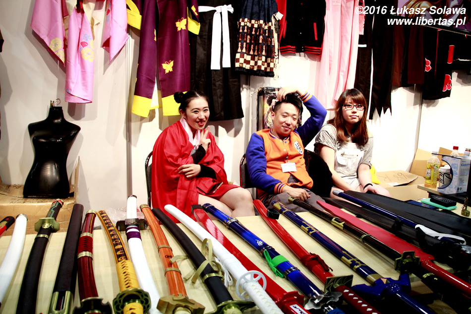 Do tego w głównej hali swoje produkty wystawiali „sprzedawcy marzeń”. Zakupić tam można było chyba wszystko, co z popkulturą związane. Począwszy od koszulek i gadżetów z superbohaterami, przez wszelkiego rodzaju grafiki, breloczki, zakładki i plakaty, aż po takie osobliwości jak steam-punkowe gogle, sztuczne uszy, wianki, poroża czy ogony, wyjęte żywcem z mang. Do tego różne dziwne nakrycia głowy, pluszowe maskotki czy kimona i katany. Liczba i różnorodność wydarzeń oraz produktów opisana powyżej nie oddaje tego, co tam tak naprawdę miało miejsce. Aby przedstawić ten przesyt, trzeba by tutaj przytoczyć program imprezy krok po kroku oraz asortyment każdego ze stoisk z osobna, a nie jest to celem tego tekstu. Jednak musicie nam wierzyć na słowo – wszystkiego było w bród.