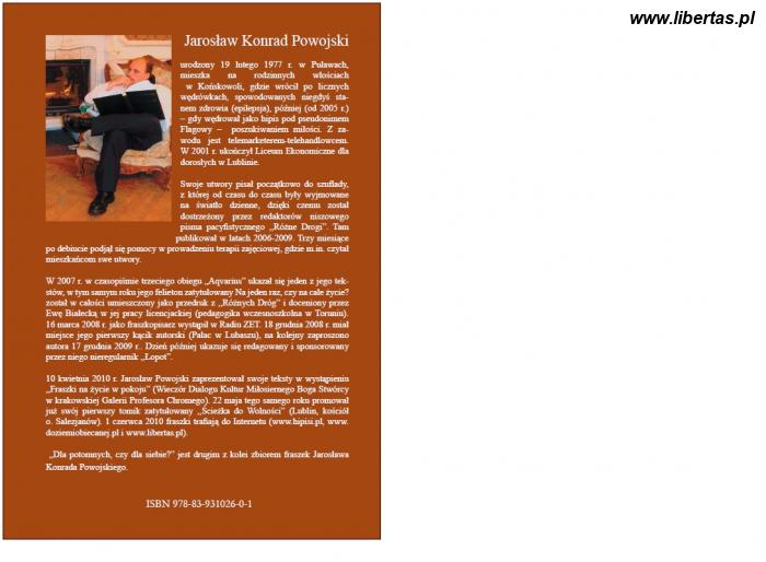 Parę miesięcy temu prezentowaliśmy debiutancki tomik poezji Jarosława "Flagowego" Powojskiego. Dziś mam radość przedstawić Wam jego kolejne już dzieło: fraszki zebrane w tomik Dla potomnych czy dla siebie?. Dwie z fraszek opublikowaliśmy w czerwcowej Antologii Poezji Hippisów .