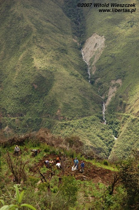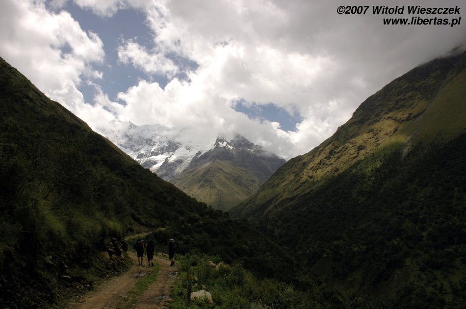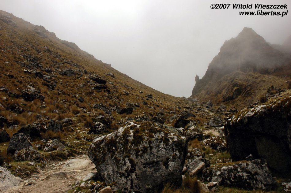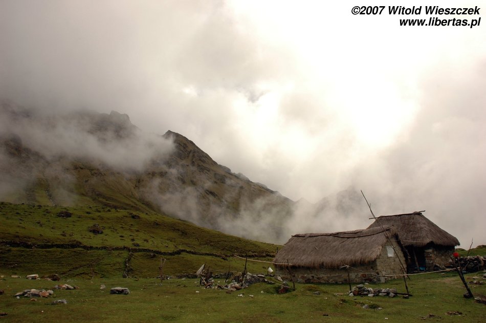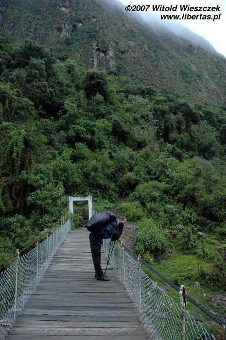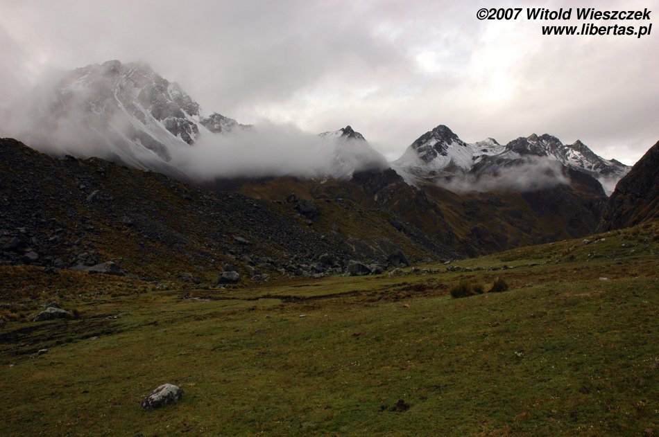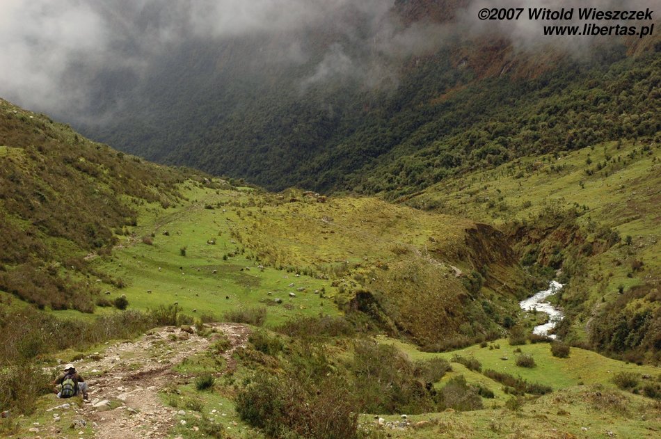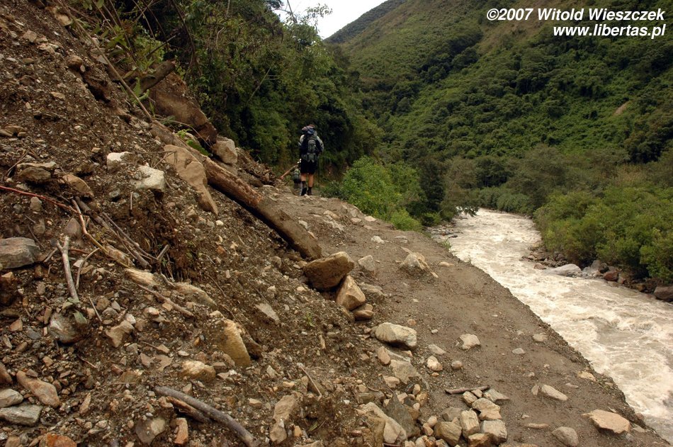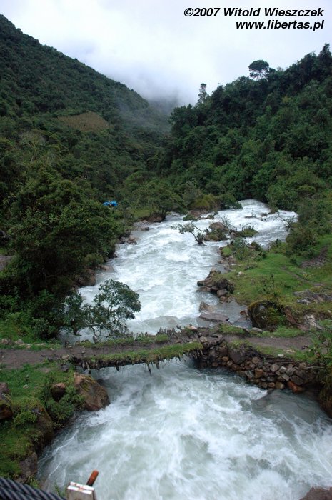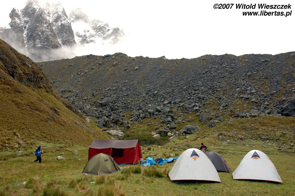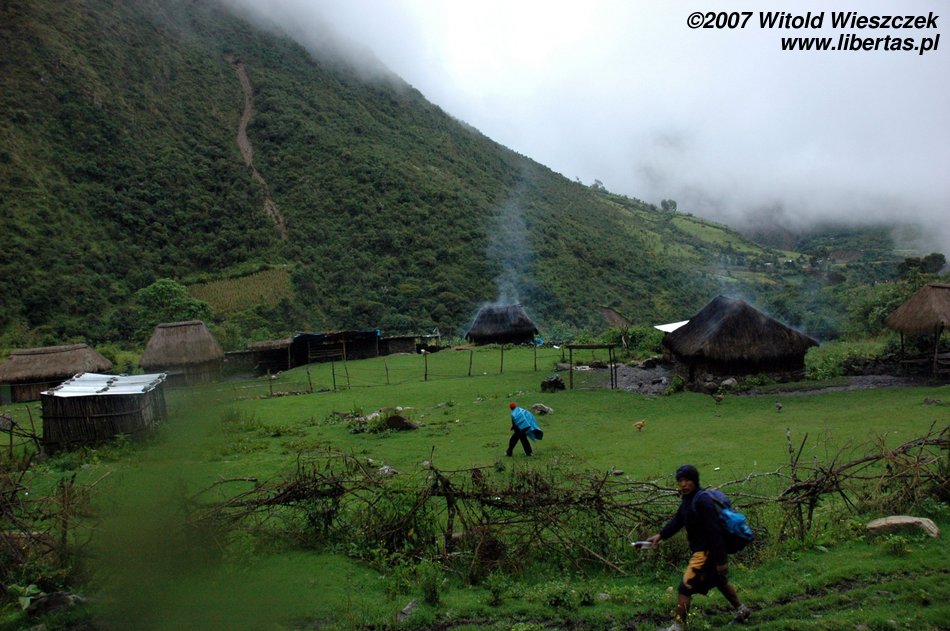 Pada cały dzień, jest straszne błoto! Lenin mówi, że to pierwsza wycieczka tą trasą w tym roku. Dwa tygodnie temu wyszła inna ekipa i musieli zawrócić, bo się nie dało przejść. W dole widać stary most, my przechodzimy już po nowym. W końcu docieramy na miejsce zwane Collpapampa (2900 m) i rozbijamy obóz.