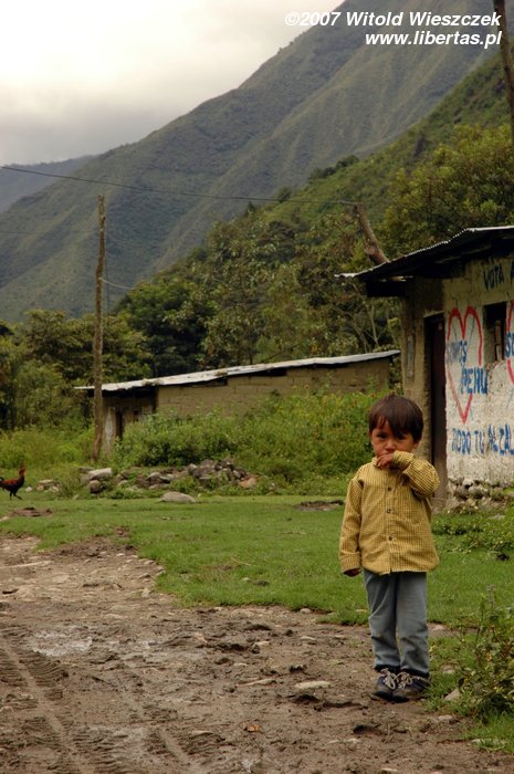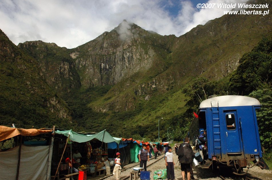 Doszliśmy do miasteczka Playa (2250 m), po hiszpańsku playa to plaża. Tabliczka o takiej treści wyglądała w tym miejscu bardzo zabawnie. Główna droga to jedno wielkie bajoro, dzieciaki biegają umorusane, na tle pięknych czystych gór. Jemy obiad i wsiadamy do autobusu, jedziemy na pociąg do miejsca o elektryzującej nazwie Hidro Electrica. Kierowca pędzi na złamanie karku po bardzo wąskiej drodze, chyba na prośbę Lenina, bo na peron wpadamy w ostatniej chwili. Zdążyliśmy! Willy Fog byłby z nas dumny!
