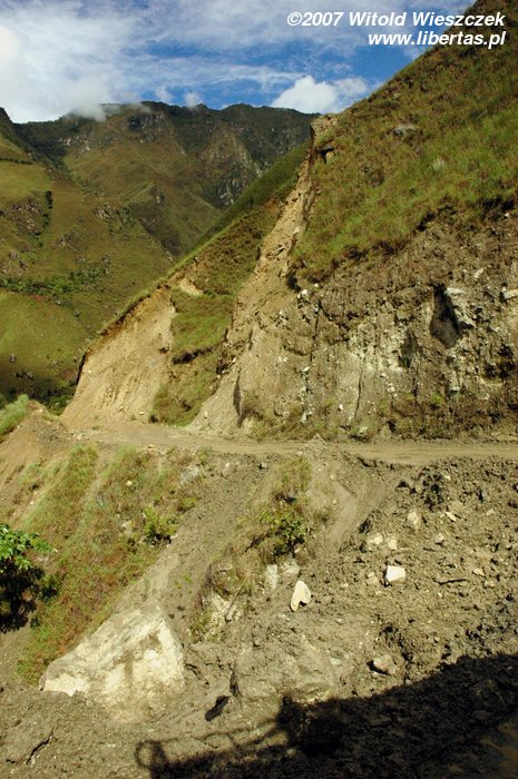 Miejscami było takie błoto, że ciężko to opisać i nawet zdjęcia tego nie oddają, co kawałek większy lub mniejszy wodospad albo osunięta ziemia. Kiedy nawet nie było błota, to były kamienie albo odchody koni. Widoków prawie żadnych, bo była mgła i padał deszcz, zresztą i tak trzeba było ciągle patrzeć pod nogi, żeby ich nie połamać na kamieniach albo nie pojechać na g...