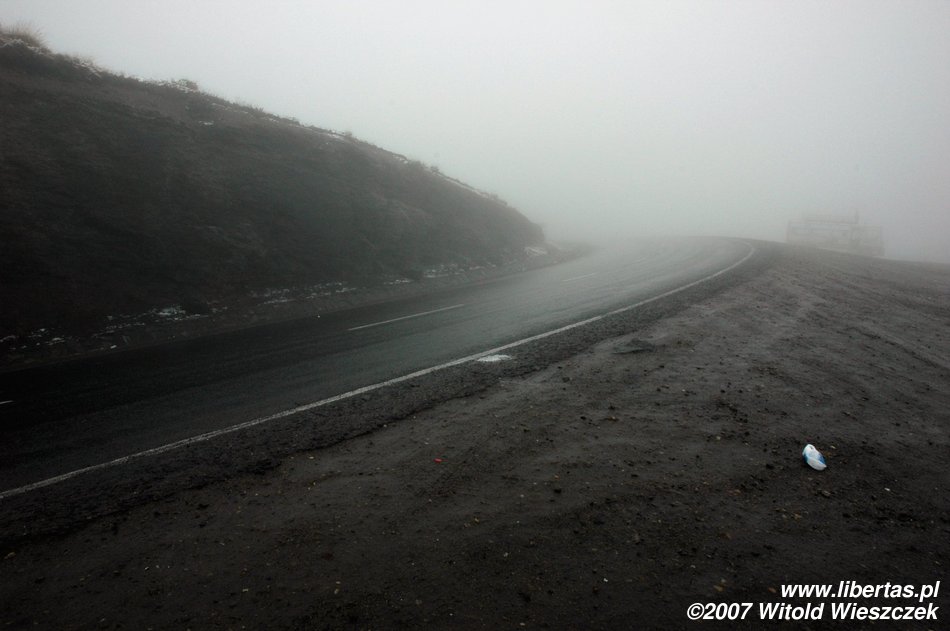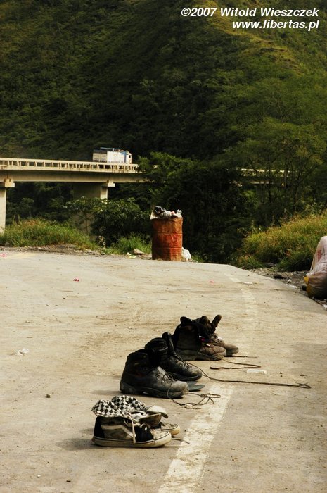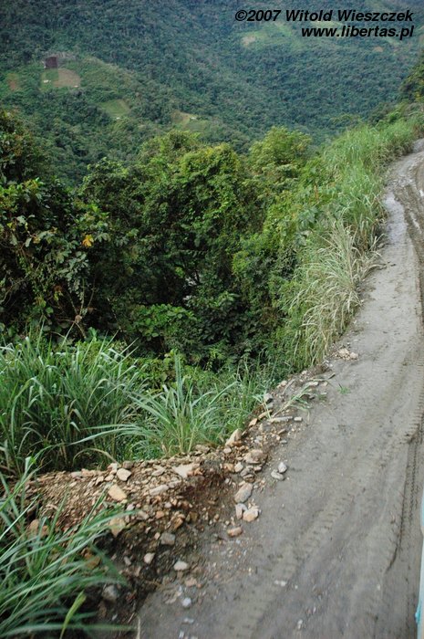 Rano jedziemy z La Paz na przełęcz La Cumbre leżącą na wysokości 4725 m n.p.m.. Tutaj zaczyna się Droga Śmierci, o której towarzyszący nam Boliwijczyk z dumą mówi „najniebezpieczniejsza droga świata”. Do niedawna ginęło na niej 200–300 osób rocznie. Pierwszy odcinek od niedawna jest asfaltowy, później już tylko błoto, zakręty, kamienie i urwiska. Aha, no i oczywiście opłata za przejazd, bo gringo w Boliwii nawet umrzeć nie może za darmo!