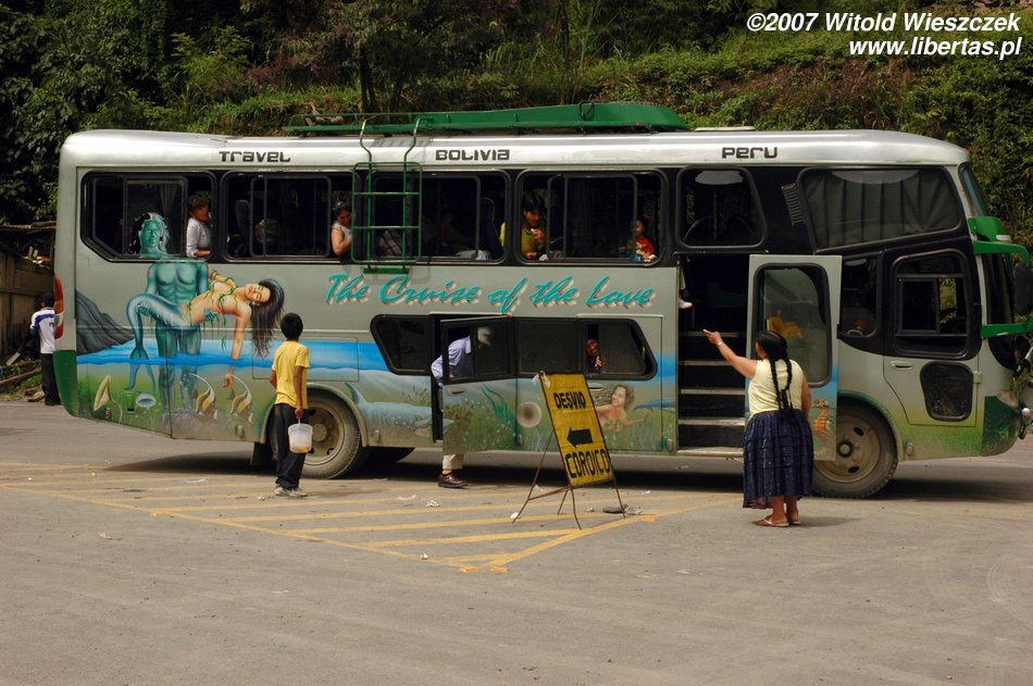 W końcu przyjeżdża nasz autobus, więc żegnamy się z naszymi boliwijskimi przyjaciółmi i ruszamy dalej do Rurrenabaque. Przejechanie tych 350 km zajmie nam około 20 godzin! Słowo „droga” jest tu trochę nie na miejscu! Na początku jest nawet zabawnie, rzuca nami na wszystkie strony, ale przecież ta „droga” nie może tak wyglądać przez cały czas. Niestety może, przez 20 godzin nie zmrużyłem oka, co kawałek wyrzucało mnie z siedzenia na jakieś 40 cm w górę! Kiedy siedziałem – groziło mi uderzenie w głowę, kiedy próbowałem leżeć – że na kolejnej dziurze odbije sobie nerki.