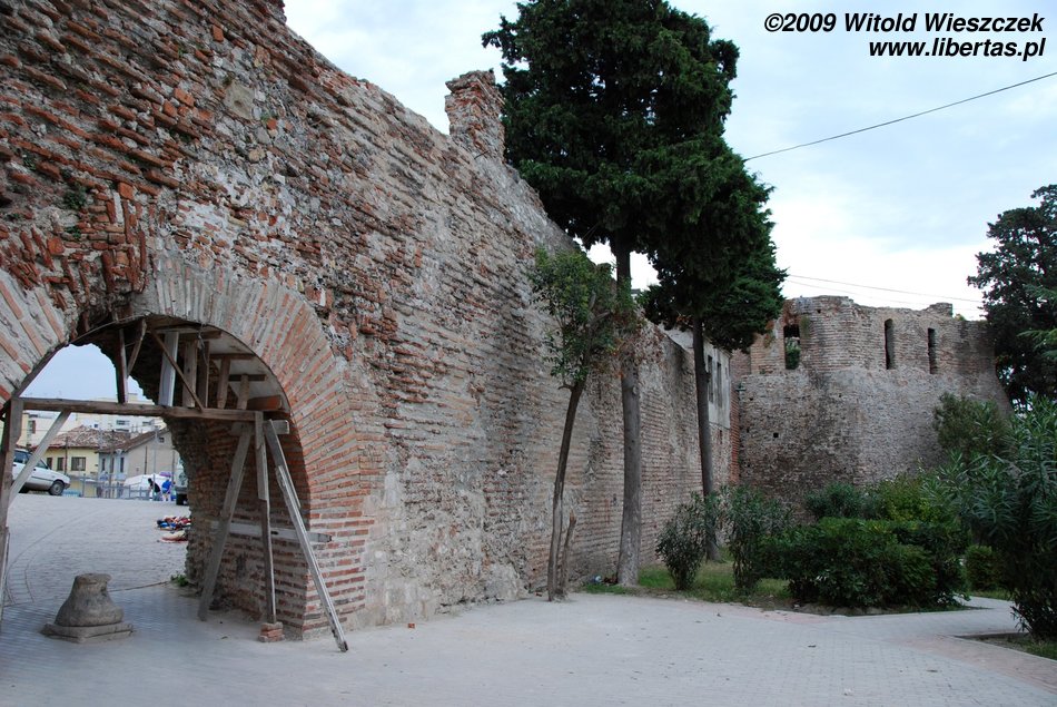In the 4th century AD Dyrrachium suffered a huge earthquake. The destroyed walls were rebuilt and additionally strengthened, and as a result it was the best fortified city in the western Balkans. The walls were raised up to 12 metres, and they are said to have been so wide that four mounted men could ride side by side on them (on the road on top). Some parts of the walls have survived until the present day. They can be seen in the photographs.