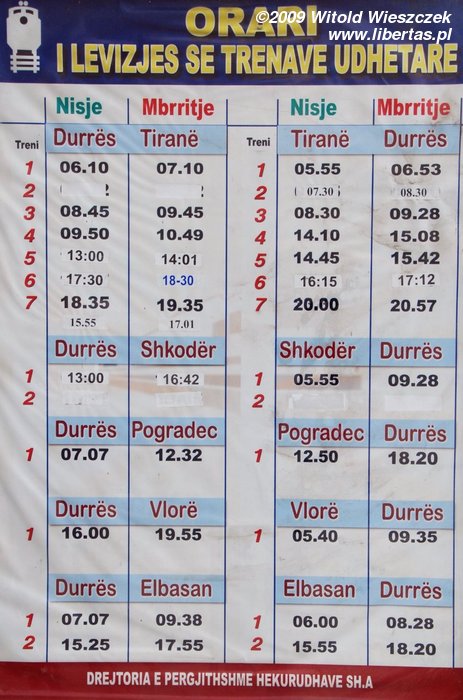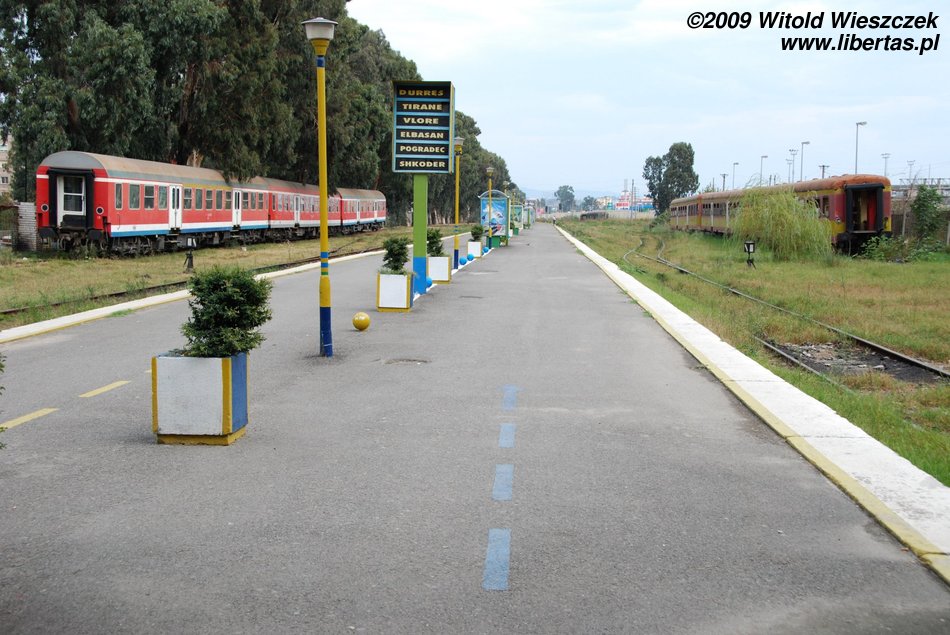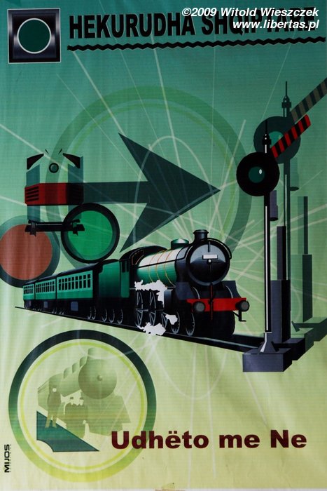 One can see the train timetable which was working in 2009 in the photo beside. I don’t know how often it is changed, so it shouldn’t be treated as up to date, and only as an approximate information on the frequency and speed of the connections. Beside there are also two nice posters from the railway station in Durrës. A normal ticket to Tirana cost 70 lek (0.5€), and purchasing it in the railway ticket office didn't create any problems for me, despite my lack of knowledge of the Albanian language. The train covered the 40 kilometre route from Durrës to Tirana within exactly one hour.