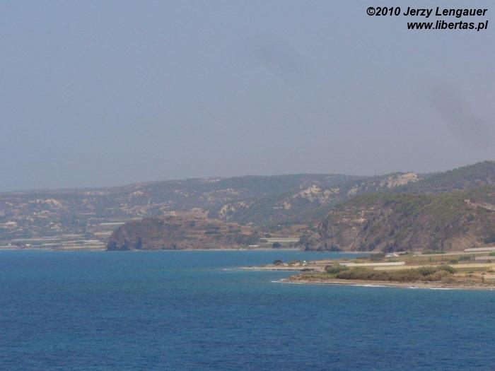 Podróż dwoma samochodami wydaje się dosyć długa. Mnóstwo zakrętów, skrzyżowania. I wszędzie niesamowite pustki. Jedziemy w przeciwną stronę do Rodos. Momentami jedziemy wśród wysokich traw przypominających szuwary albo gaje oliwne. Z tymi gajami to taka moja osobista porażka. Dotąd z literatury kojarzyłem, wyobrażałem je sobie, jako coś wzniosłego, delikatnego, owianego tchnieniem bogów. Tam powinna być świeża, soczysta zieleń traw, drzewka rosnąć same, otulone jedynie boskim oddechem. Tam żmije same ustępują ludzkim gołym stopom, a trawa natychmiast się podnosi. Tam słońce nie parzy skóry, a daje jedynie przyjemne ciepło. Tyle moich marzeń, bo mijamy po prostu sady. Wypalona trawa, spod której wygląda szara, zniechęcająca do chodzenia po niej, ziemia. Drzewka nie zapraszają do spacerów między nimi. Jakieś brudne, zakurzone. Takie „a niech sobie rosną…”. Oczami wyobraźni nie mogę dostrzec, żeby rankiem lub wczesnym wieczorem chodzili między nimi sadownicy-ogrodnicy, biorący z miłością w palce tulące się do nich listki, amputujący z bólem serca i duszy uschłe gałązki, zraszający z czułością delikatnym strumieniem wody korony drzewek i ziemię, w której drzemią malutkie korzenie.