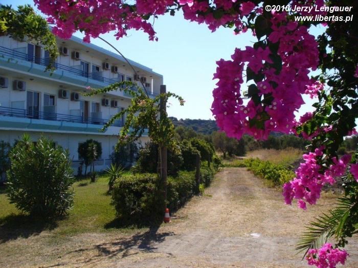 Posuwamy się wolno za A. i W. Witają się z jakimś niskim, szpakowatym mocno jegomościem. Pierwszy raz słyszę grecki. Podobno mamy ruszać w kierunku samochodu, bo to właściciel naszego hotelu. Przyjechał po nas. Coś w rodzaju niemłodej już furgonetki. Biała, pordzewiała i brudna. Później zorientuję się, że to standard. Powiedziałbym, że nawet mi to odpowiada. Przez grzeczność dla samego siebie, dla podtrzymania opinii o mnie samym, szepcę, że samochód jest brudny. Tak naprawdę takie nie przywiązywanie wagi do spraw niewartych, żeby się nad nimi specjalnie pochylać, bardzo mi się podoba. To chyba kwestia jakiegoś odpoczynku, odrzucenia stałego napięcia. Już marzę, żeby jakoś to przenieść do mojego polskiego życia. Długo nie mogę zapamiętać, jak ma na imię właściciel. Apostolis. Krząta się wokół nas. Pakuje bagaże do auta. Jest niezwykle pomocny. W zasadzie nie wygląda przez to na właściciela, ale jakiegoś pomocnika. Mamy jechać w dwóch ratach. Więc z S. stajemy z boku na papierosie. Ale nie. Jedziemy wszyscy. Fajnie to wygląda. W takim samochodzie, z walizkami na kolanach. Do hotelu podobno blisko. I tak jest rzeczywiście. Jednak nie pamiętam prawie niczego z tej krótkiej jazdy. Jestem podekscytowany, ale i zmęczony. Zbliżamy się do Rhodian Sun. Wrażenia? Palmy, białe domy. Polskie upały z przełomu czerwca i lipca początku lat dziewięćdziesiątych to nic w porównaniu z tym tutaj.