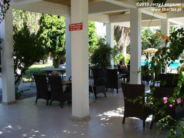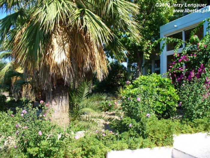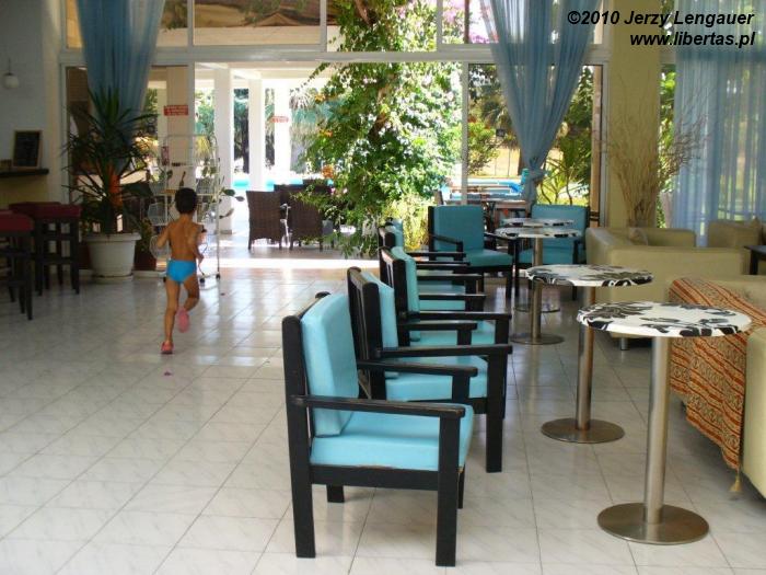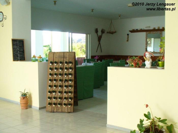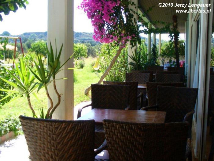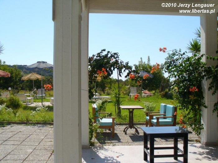 Cóż, o hotelu miałem całkiem inne wyobrażenia. Ale dlaczego miałyby się zrealizować? Nigdy nie byłem na południu Europy. Tanie hotele praskie, ryskie, tallińskie to nie było nic szczególnego. Nie znajdywałem w wyobrażeniach porównania. Chyba sugerowałem się widzianymi przelotnie reklamami, folderami. Jednakże jest bardzo miło. Kolejne spotkanie z miejscowym luzem, swoistym „take it easy” po grecku. Żadnego zamieszania z kluczami, kolejką przy recepcji, opierania się o walizki. Bagaże zostawiamy w holu, a Apostolis prowadzi nas do czegoś w rodzaju tarasu. Drewniane stoliki, wiklinowe krzesła i fotele. Pośpiech nie jest wskazany. Przecież jesteśmy na wakacjach. Rozsiadamy się. A. i W. rozmawiają z Apostolisem. Pojawia się jeszcze ktoś. Podobno któryś z jego synów. Dopiero po paru dniach potrafię ich rozpoznać, ale nie pamiętam, który kręcił się koło nas pierwszego dnia. Być może był to najsympatyczniejszy z nich – Nikos. A może Stavros, który najczęściej siedział w recepcji i barze. Bo chyba nie Jorgos, którego widziałem przelotnie może ze dwa razy? W każdym razie dostajemy drinki. To pinacolada. Niezwykle orzeźwiający i słaby. Łagodny w smaku i raczej słodki. Z mleczkiem kokosowym. W drugim tygodniu wakacji jest dla mnie wieczornym przebojem. W pierwszym będzie coś całkiem innego. Rozmowy toczą się w greckim i angielskim. Na razie brak mi odwagi, żeby w nich uczestniczyć. Od czasu do czasu wyduszam coś grzecznie po angielsku. Mam, zatem czas, żeby obserwować. Publiczna część hotelu dość elegancka, jak dla takiego drobnomieszczanina jak ja. Pomimo tej niby elegancji odczuwam wszechogarniający luz. Apostolis nadal niezwykle serdeczny, ciągle uśmiechnięty i nadal we wszystkim pomocny.