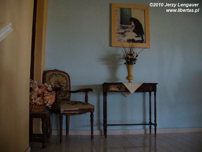 W końcu docieramy do pokoi. Apostolis oczywiście targa walizki. Na pierwsze piętro. Długi, wąski korytarz. Ciemny, bo drzwi do pokoi po obydwu stronach. Dopiero w końcu korytarza światła dużych okien. Wygląda to jak z opowieści ludzi, którzy byli „po drugiej stronie”. Ciemny tunel, a na jego końcu oślepiające światło. Pokoik malutki. Trochę źle się czuję, bo lubię mieć swobodę na wakacjach w przypadku kiepskiej pogody. Ale tutaj przecież nie będzie kiepskiej pogody! Któregoś dnia, gdy zwiedzamy starożytne Kameiros i S. opowiada, że pomieszczenia mieszkalne antycznych Greków były bardzo małe, ponieważ oni tam tylko spali, a całe życie odbywało się na zewnątrz, przypominam to sobie. Faktycznie, pokój służy tylko do spania i ewentualnie do sjesty. Jest przedpokój z szafą, łazienka całkiem czysta, ale miejsce prysznicowe archaiczne. Niczym nieoddzielone od pozostałej części łazienki. Woda leje się po całej i spływa do otworu kanalizacyjnego na środku podłogi. W pokoju są całkiem fajne szafki z szufladkami, jakby stylizowane na kilkudziesięcioletnie co najmniej. Jeden fotel, duże lustro i lampki nad łóżkami. Nad dwoma łóżkami! Gdzie jest trzecie? Mówimy o tym z A. przy kolacji. Od razu interweniuje u Apostolisa. Ma być dostawione łóżeczko polowe i przyniesiona lodówka. E. nie chce naciskać. Ale wszyscy twierdzą, że za to płacimy i ma być. No tak, czas, w którym tutaj obiecuje się zrobienie czegokolwiek musi być mnożony co najmniej przez trzy. Jeszcze tego nie wiemy. Przyzwyczajeni, ba! uwiązani do natychmiastowości i bieganiny denerwujemy się, dyskutujemy, komentujemy. Spokojnie, spokojnie, przecież to wakacje. Nikomu nie powinno się do niczego śpieszyć. Łóżko nadchodzi późnym wieczorem, a lodówka dopiero następnego dnia. Teraz już rozumiem, że dla Apostolisa to absolutnie nie było „dopiero”. Jakże bardzo teraz podziwiam tego człowieka.